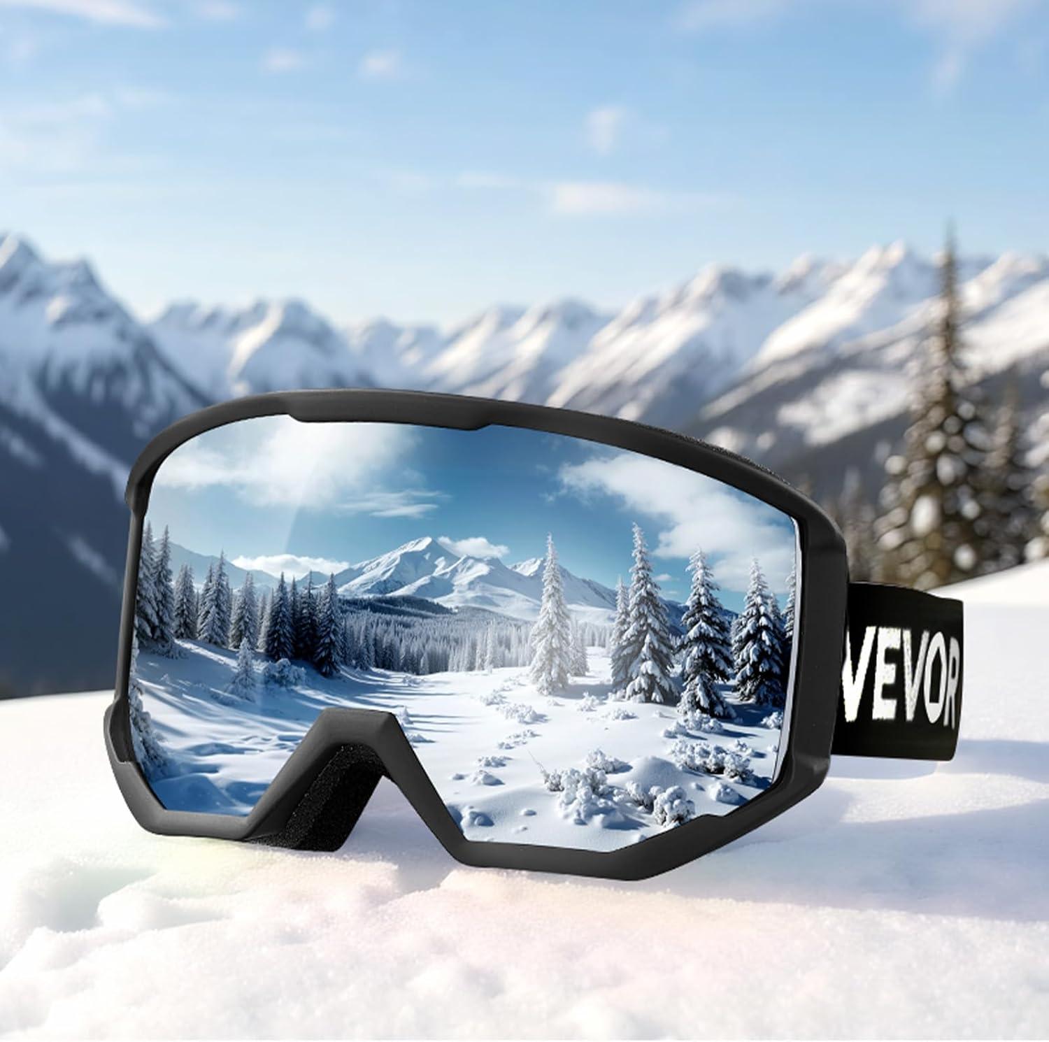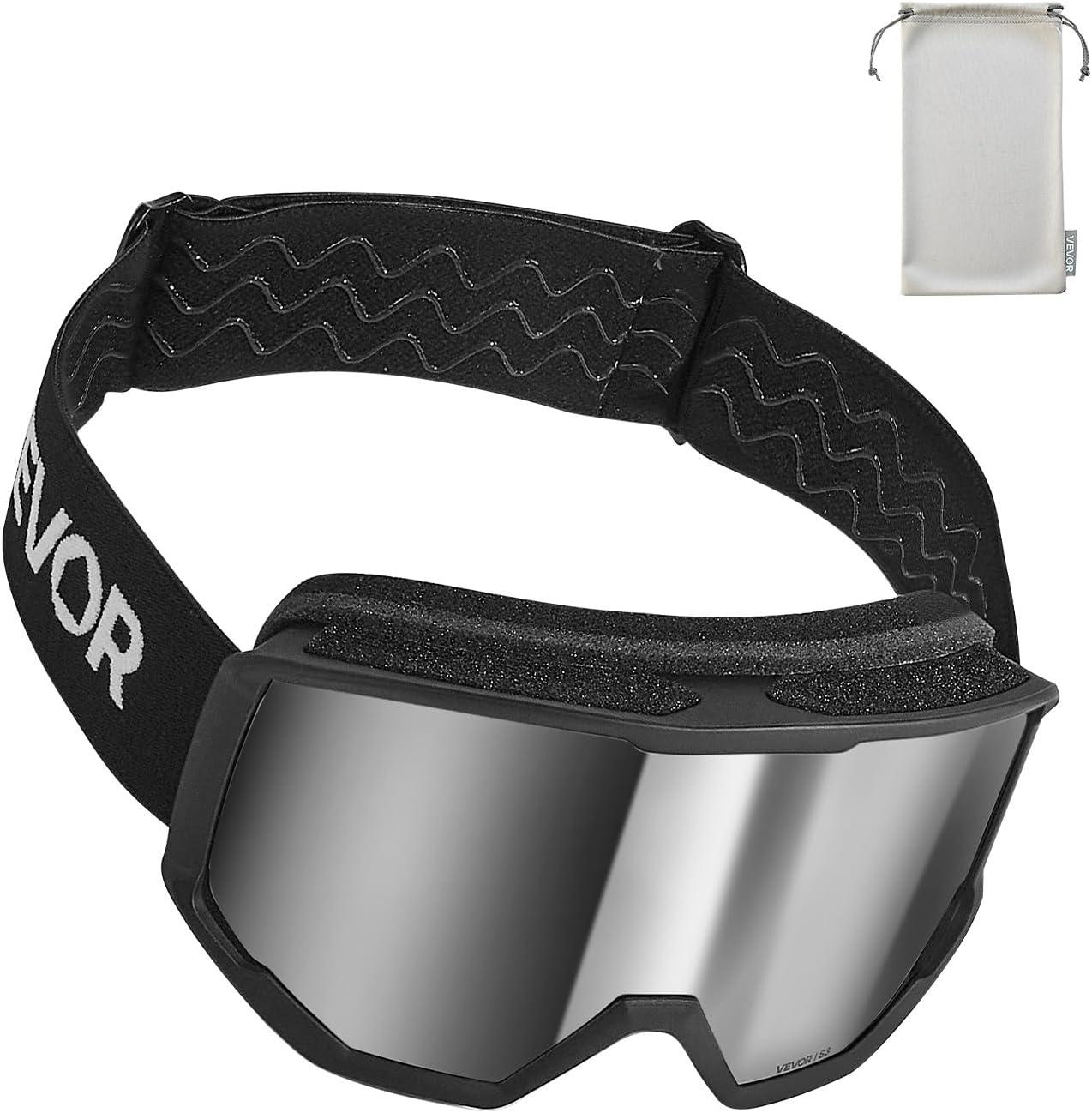 VEVOR Ski Goggles, Cylindrical Lens with Revo Coating, OTG Anti fog Snow Goggles, TPU Frame & Ventilation Structure(Silver)