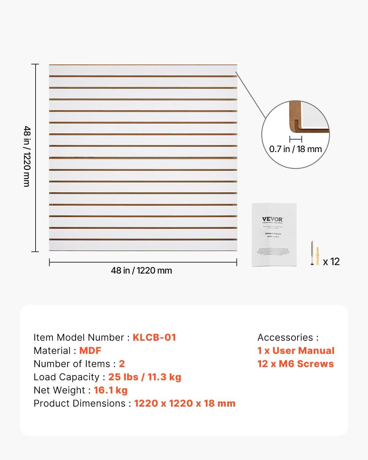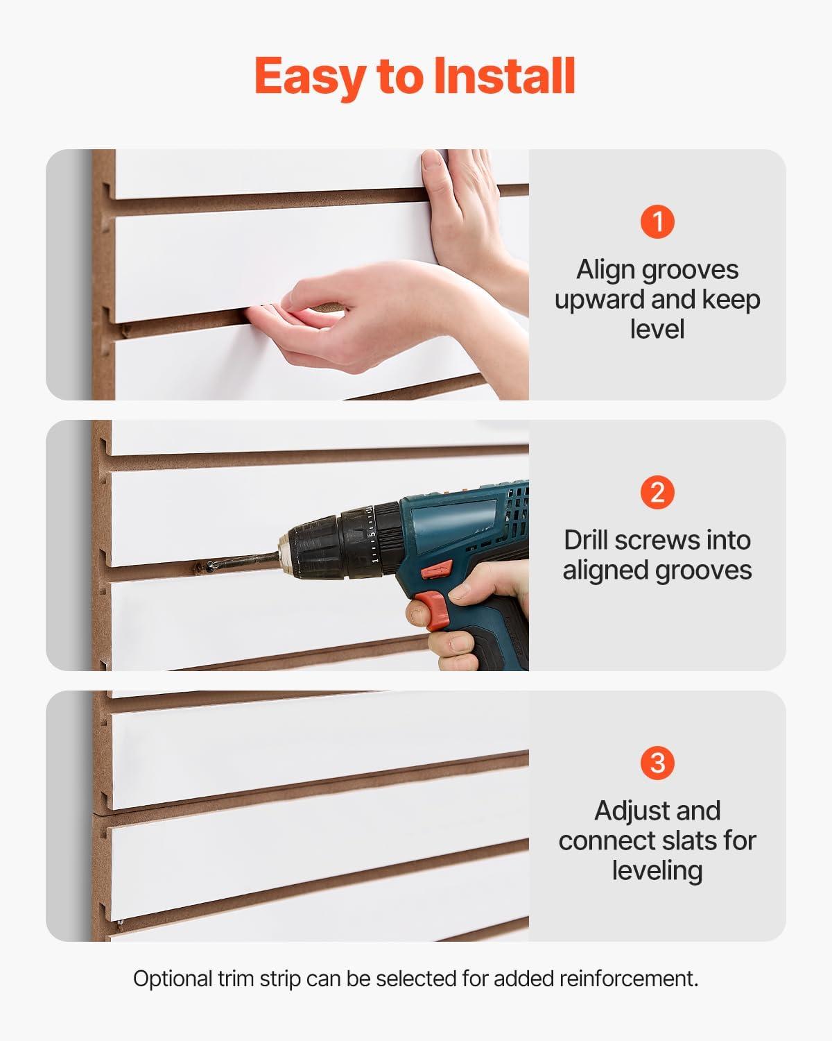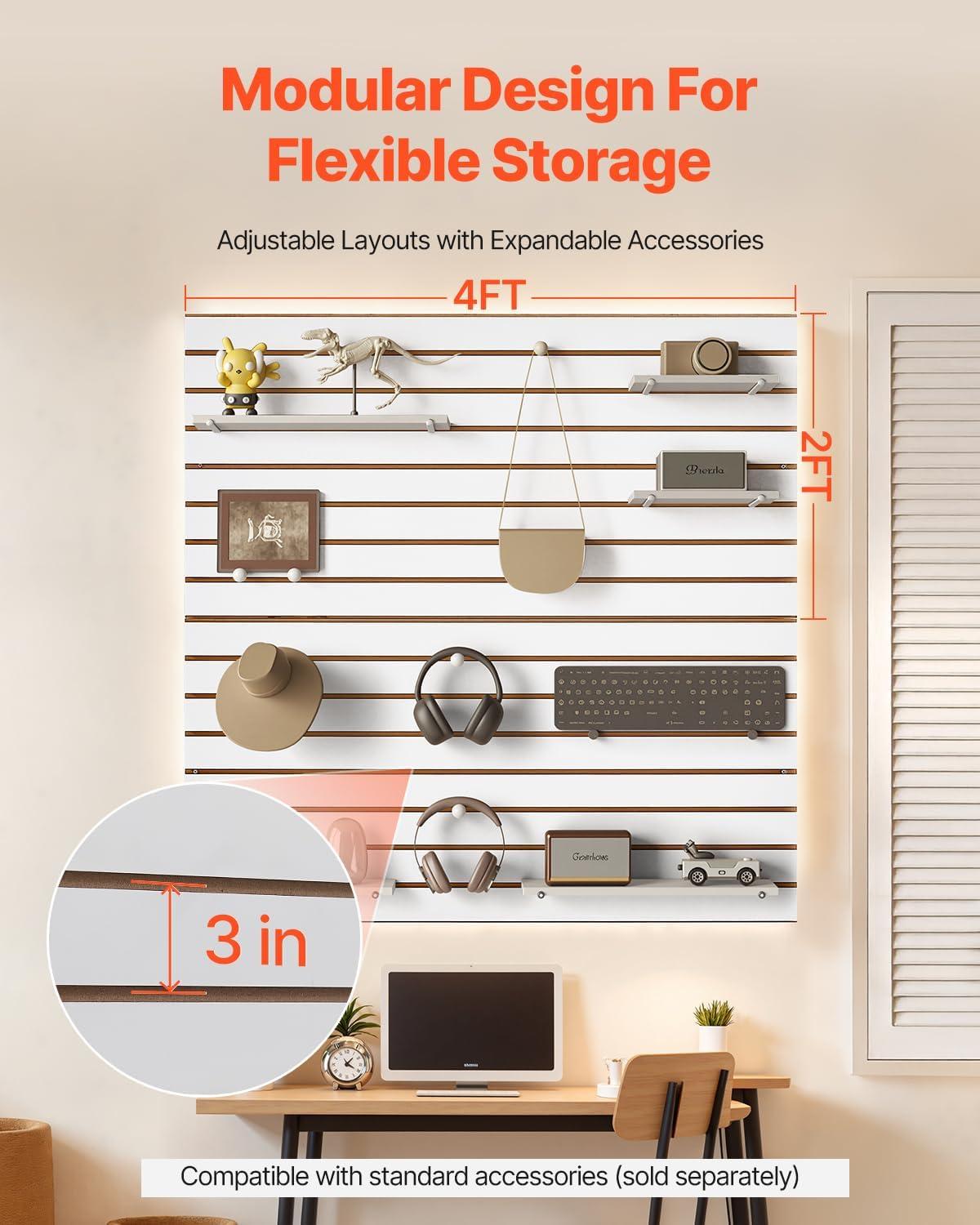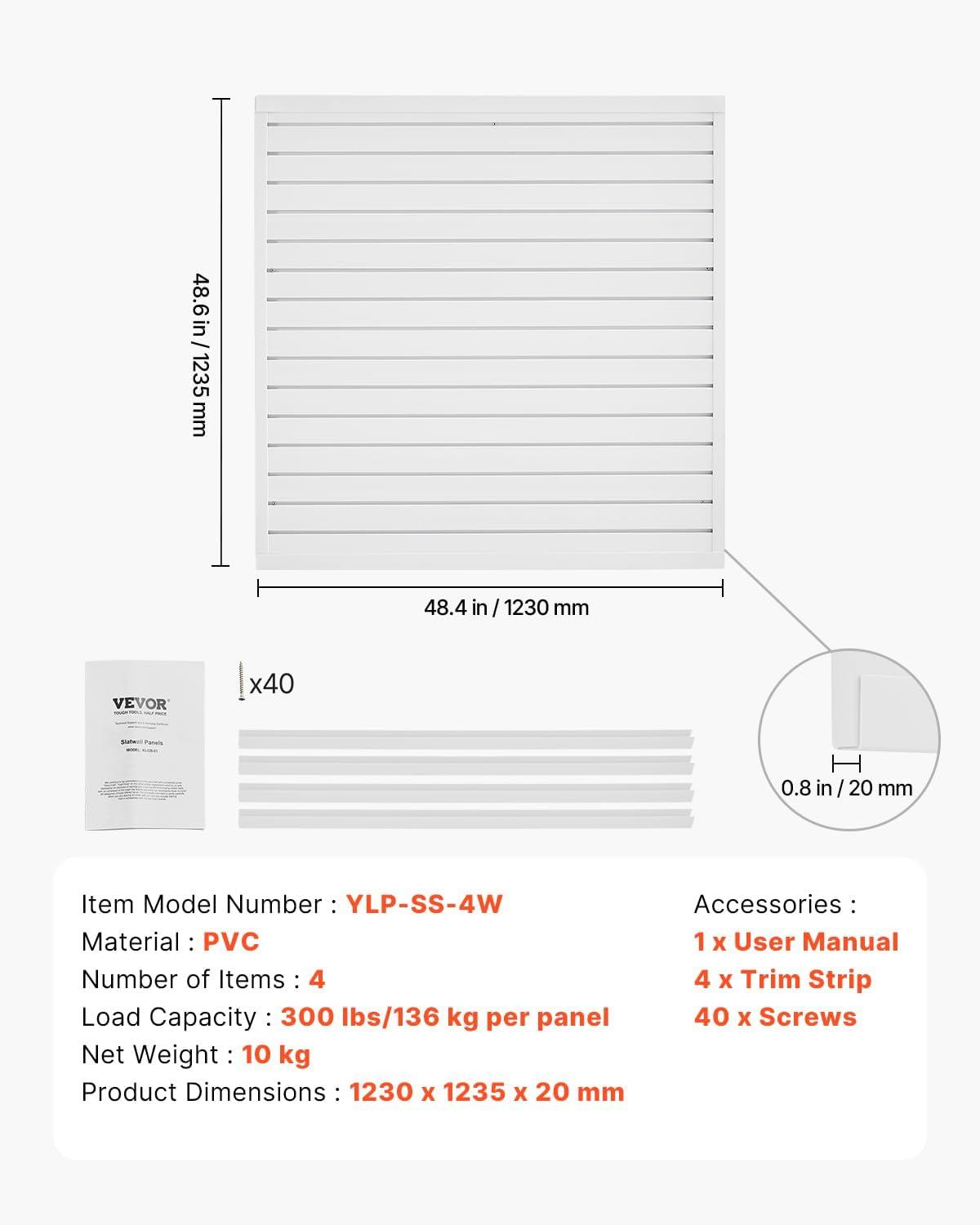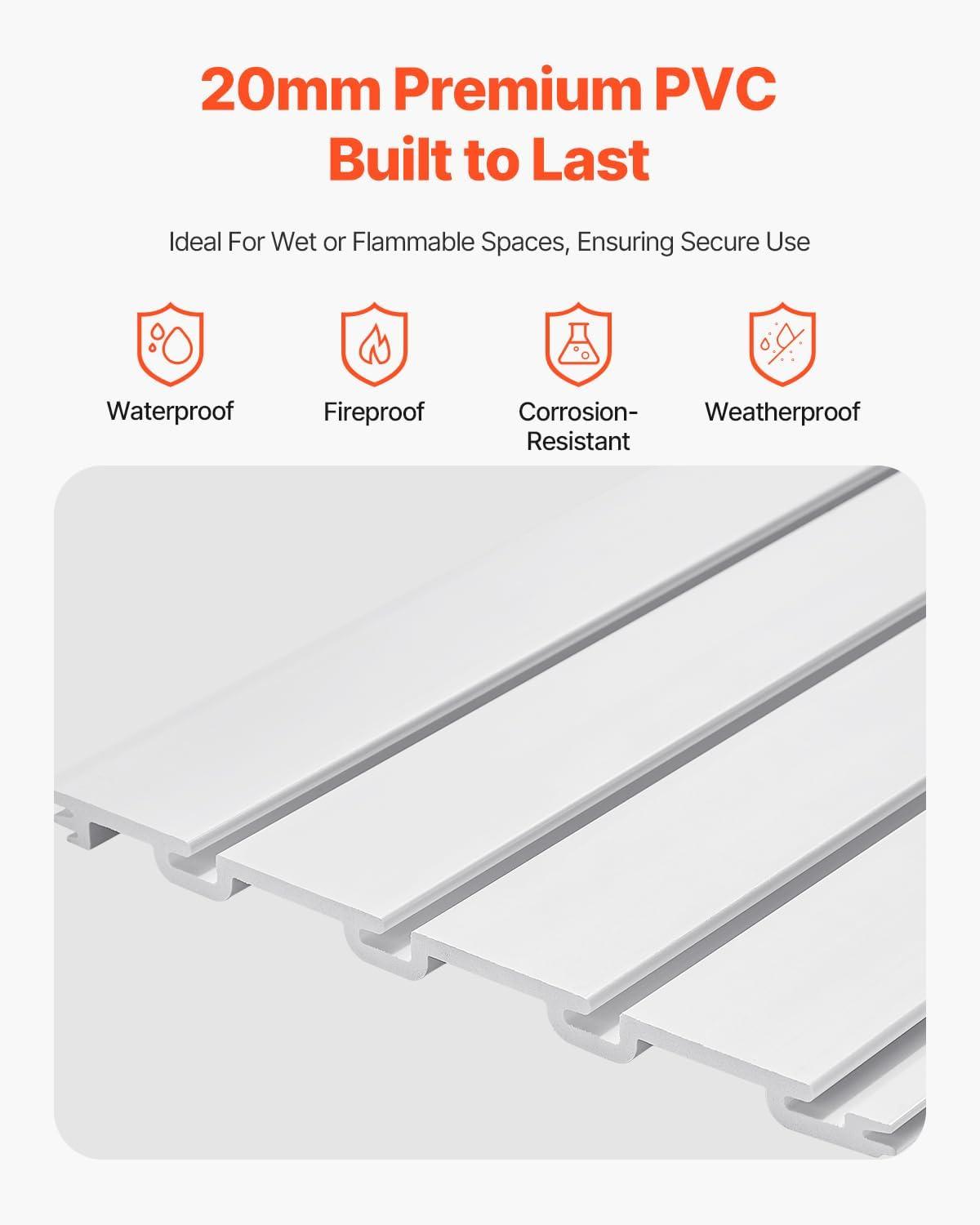 VEVOR Slat Wall Paneling, 4 x 4 ft, PVC Garage Slatwall with Modular Design, White Slat Wall Easy-to-Install Adjustable Slatwall Panel with Coupling Structure & DIY Cutting, Fits for Storage & Display(White)