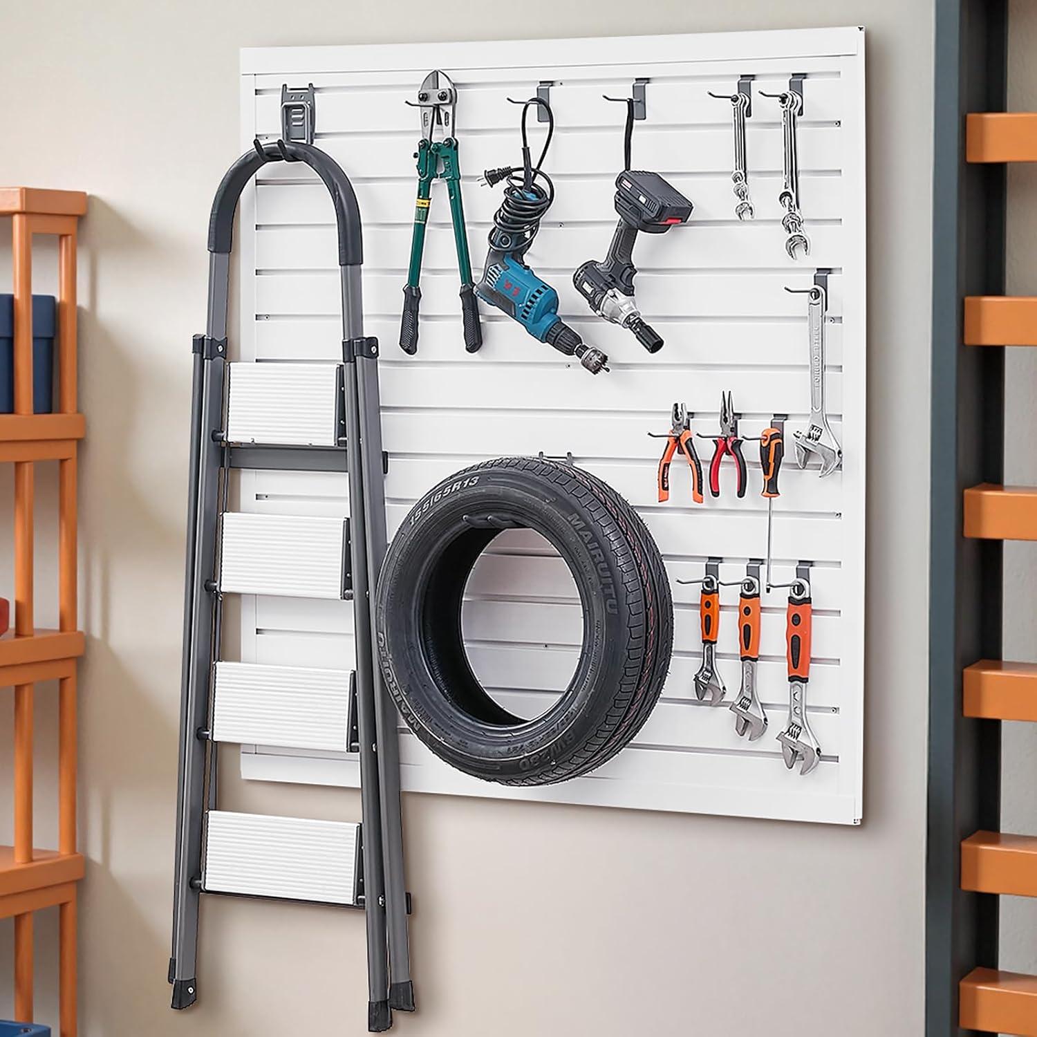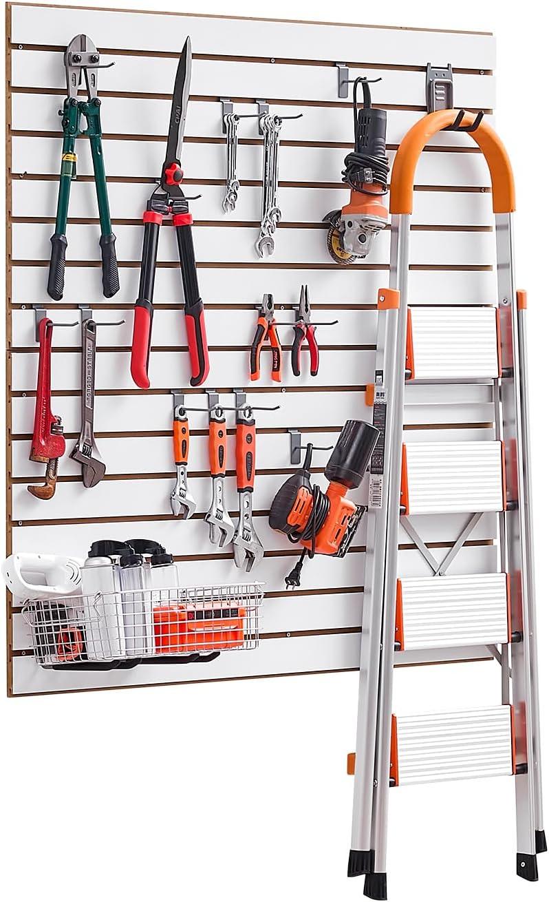 Strong Load-Bearing Capacity: The slat wall panel can support up to 300LBS/4ft², providing stable and efficient storage for various heavy items such as hammers, drills, ladders, and more, making it ideal for use in garages, workshops, and other spaces.