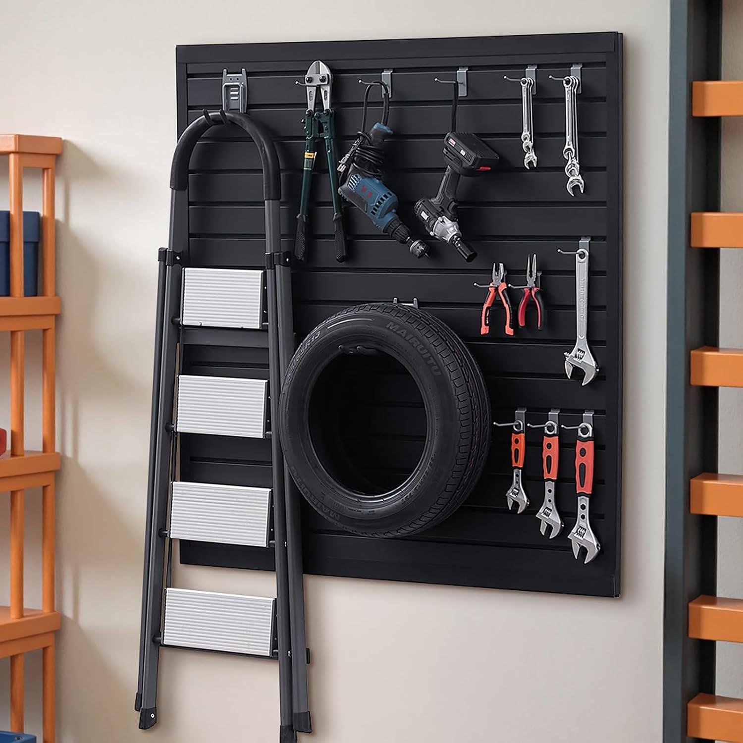 Strong Load-Bearing Capacity: The slat wall panel can support up to 300LBS/4ft², providing stable and efficient storage for various heavy items such as hammers, drills, ladders, and more, making it ideal for use in garages, workshops, and other spaces.