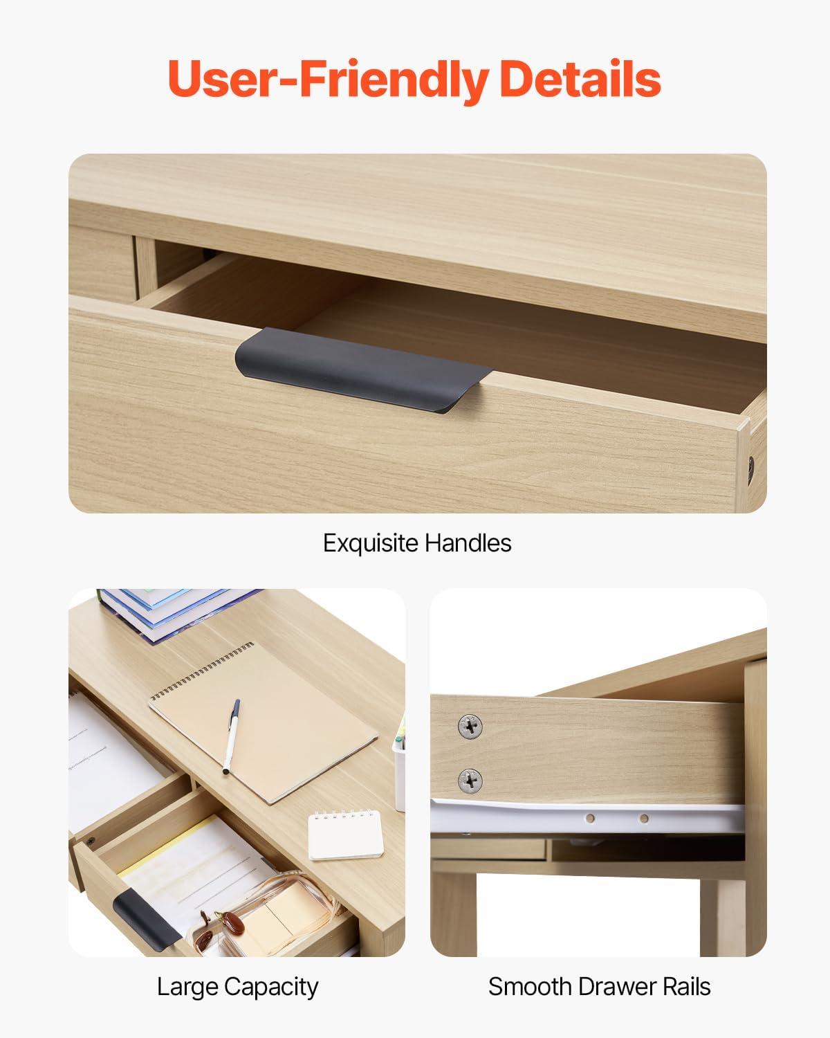 Easy to Clean: Featuring a double-sided melamine laminate finish and PVC edging, the desk with drawers surface is smooth and resistant to stains, requiring only a light wipe with a damp cloth to keep it clean.
