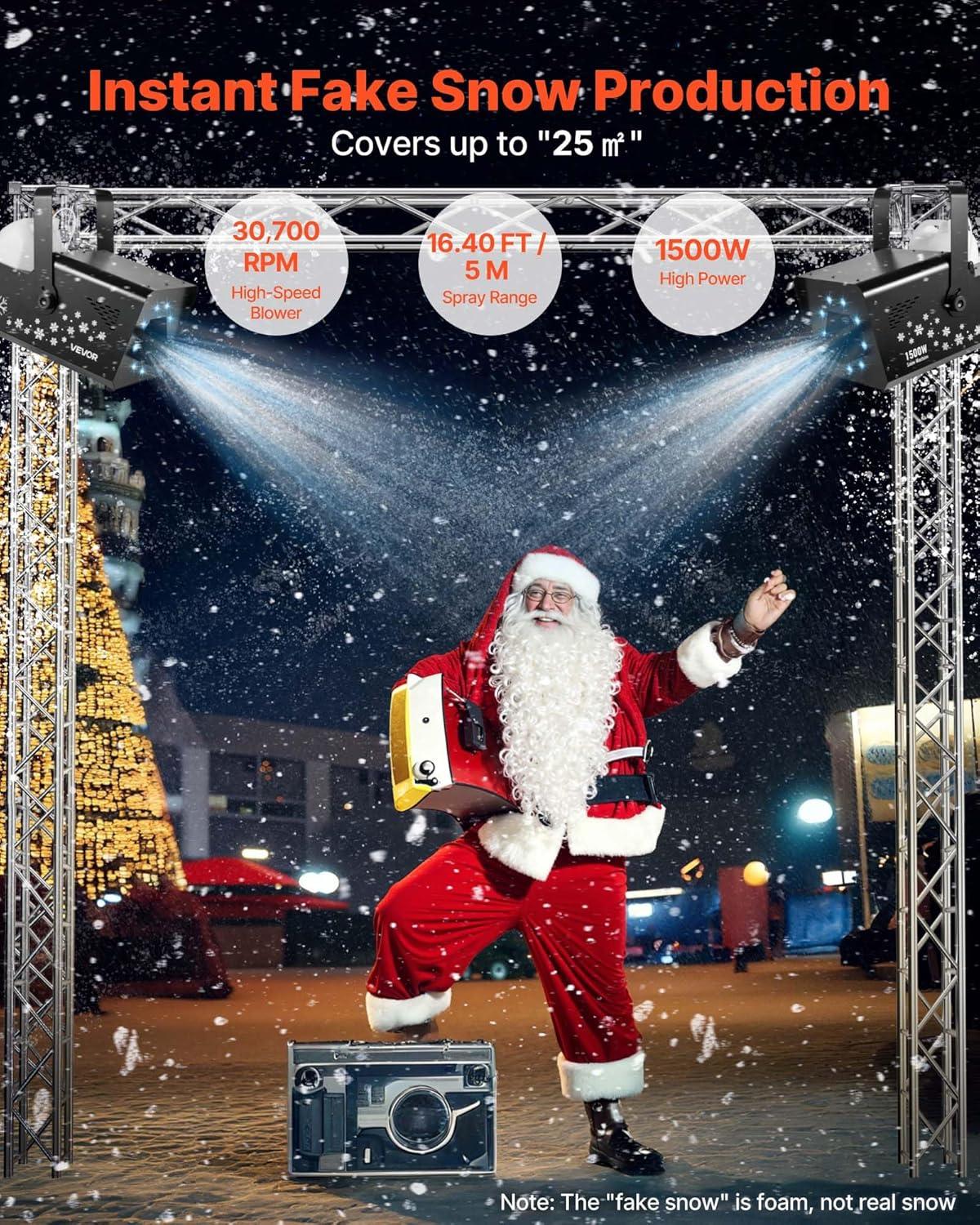 Efficient Snow Production: The VEVOR snow machine is equipped with a powerful 1500W motor and a 5L large-capacity water tank, generating continuous streams of realistic snowflakes. With a 3-5 meter spray distance and an impressive 20㎡ coverage area, it ensures your space is beautifully covered in snow. Note: The “snowflakes” produced by snow machines are actually bubbles.