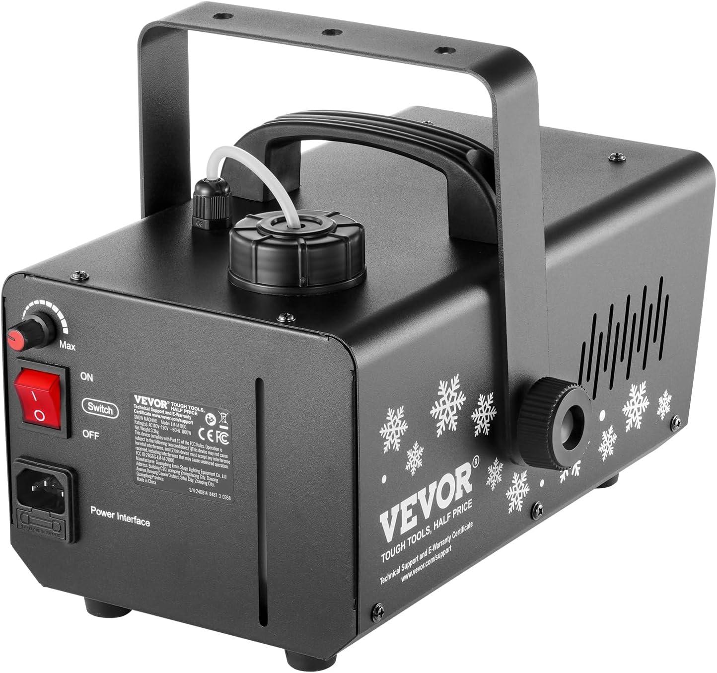 VEVOR Snow Machine, 1500W Snow Maker Machine with 2 Remotes Control and 5L Large Capacity Water Tank, High Output Snowflake Maker Stage Snow Effect for Christmas, Halloween, Wedding, DJ Parties(Black 800w)