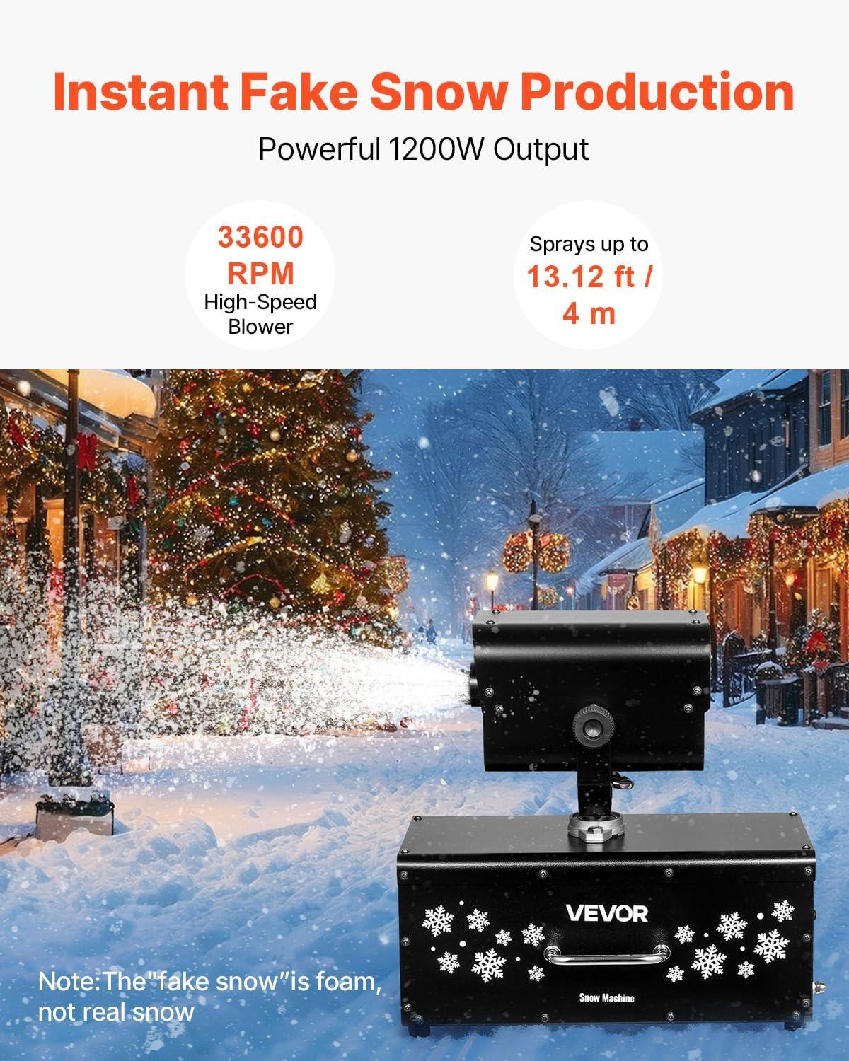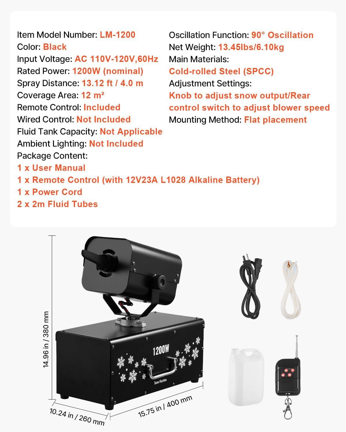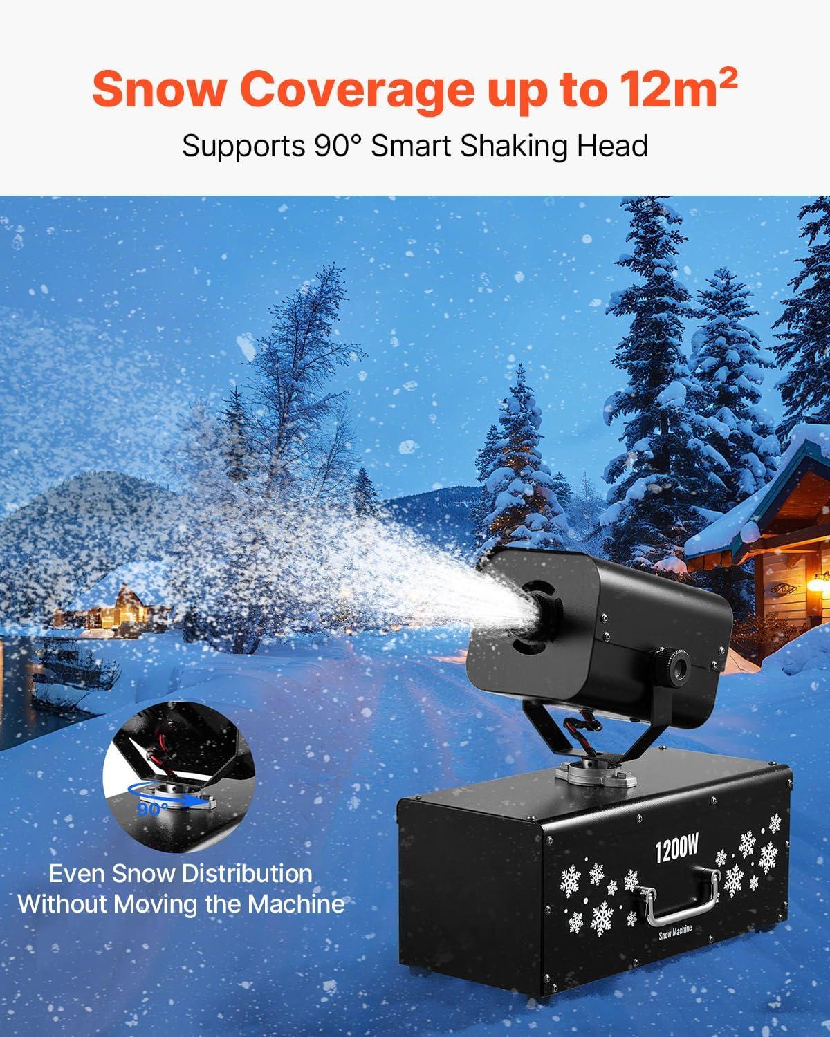 Efficient Snow Production: The VEVOR snow machine is equipped with a powerful 1500W motor and a 5L large-capacity water tank, generating continuous streams of realistic snowflakes. With a 3-5 meter spray distance and an impressive 20㎡ coverage area, it ensures your space is beautifully covered in snow. Note: The “snowflakes” produced by snow machines are actually bubbles.