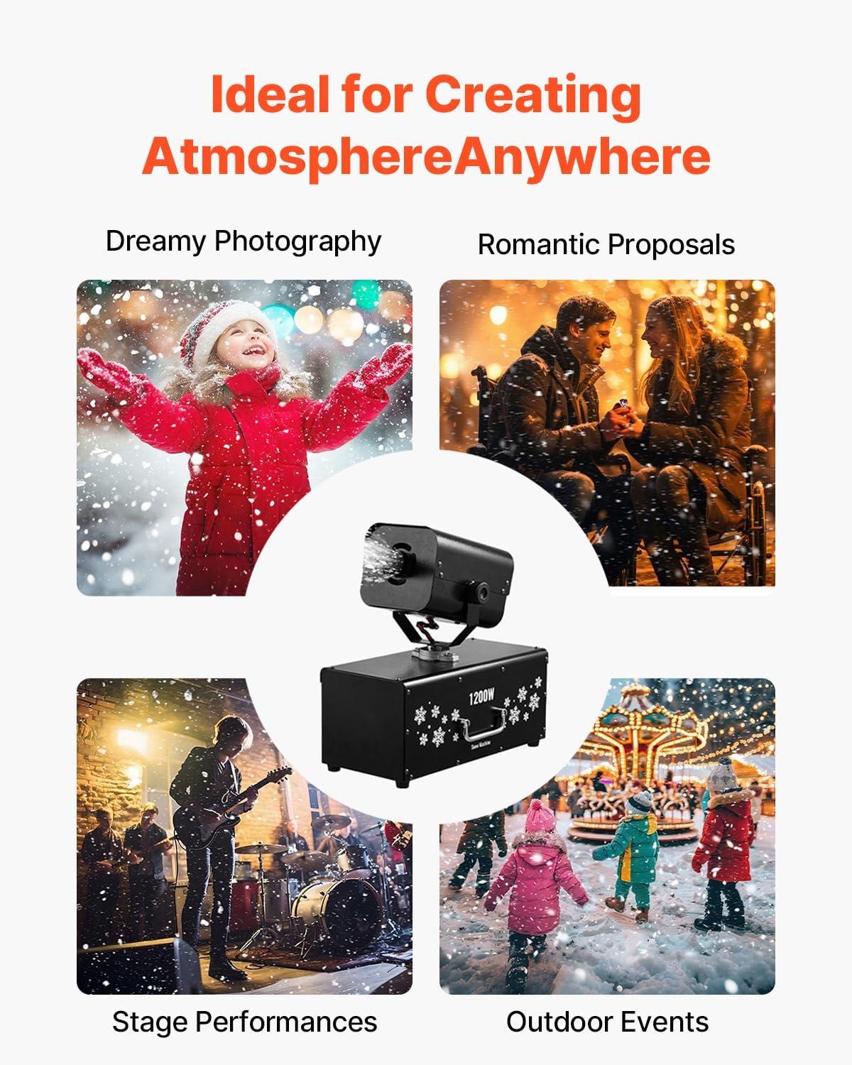 Wide Application: Lightweight and portable with a built-in handle, this snow machine is ideal for stage performances, shopping malls, scenic areas, weddings, corporate events, and TV shows. It’s perfect for enhancing the atmosphere at parties, concerts, DJ sets, weddings, home gatherings, and karaoke events.