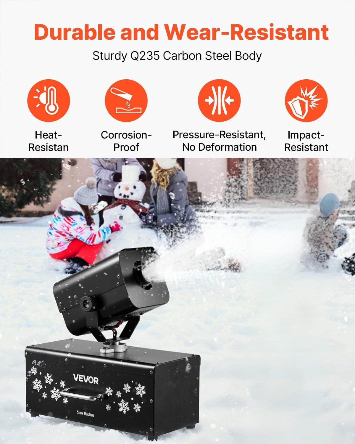 Secure and Reliable: Constructed from premium metal with a painted finish, the snow making machine is durable, heat-resistant, corrosion-resistant, and rust-proof. Its excellent heat dissipation ensures long-lasting performance and secure repeated use.