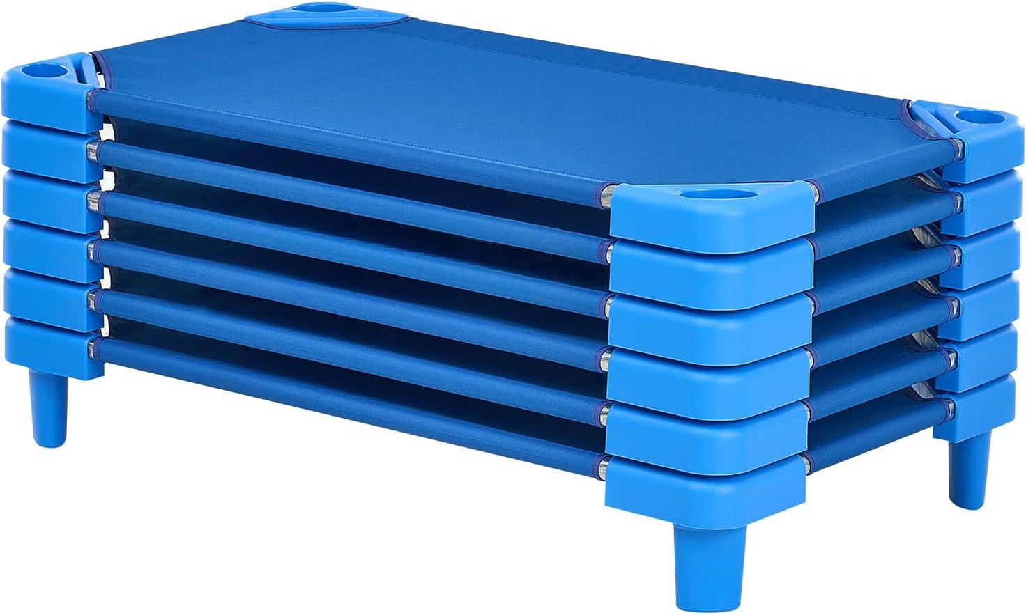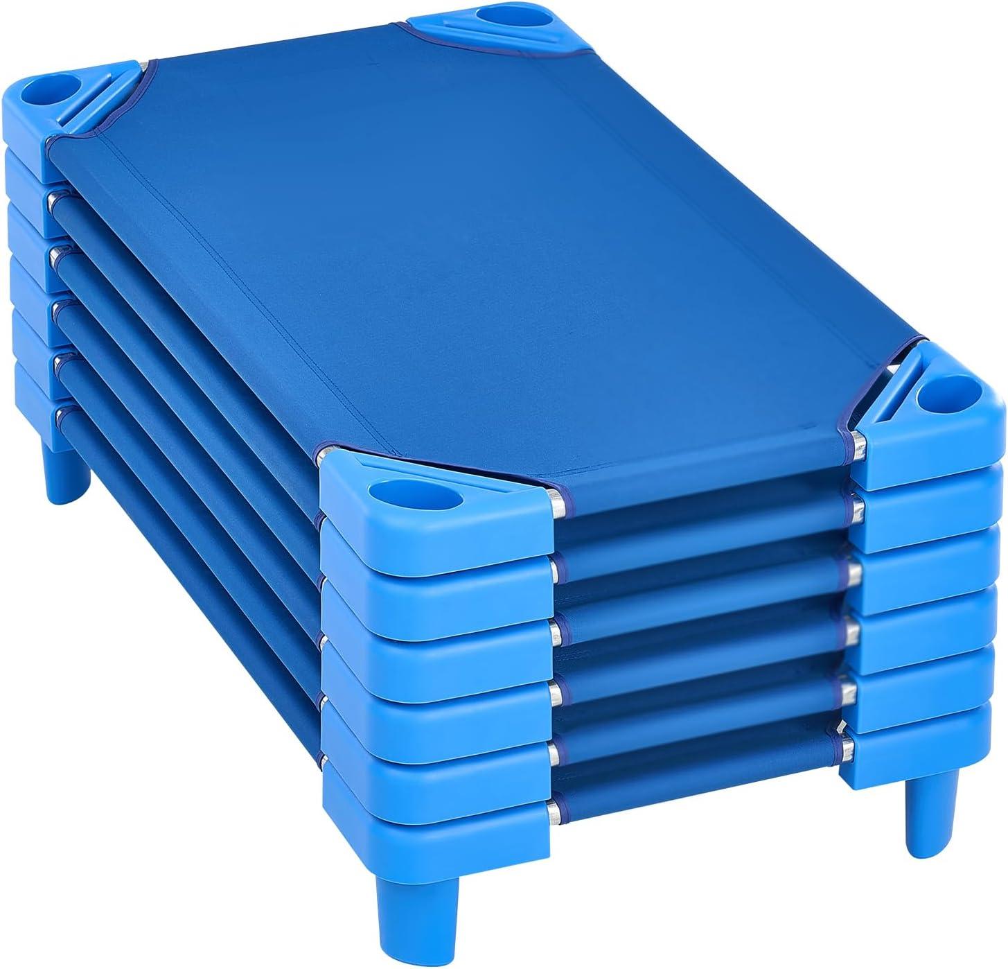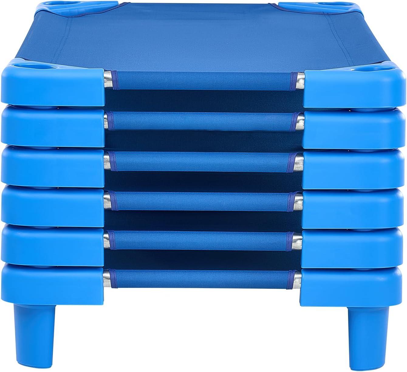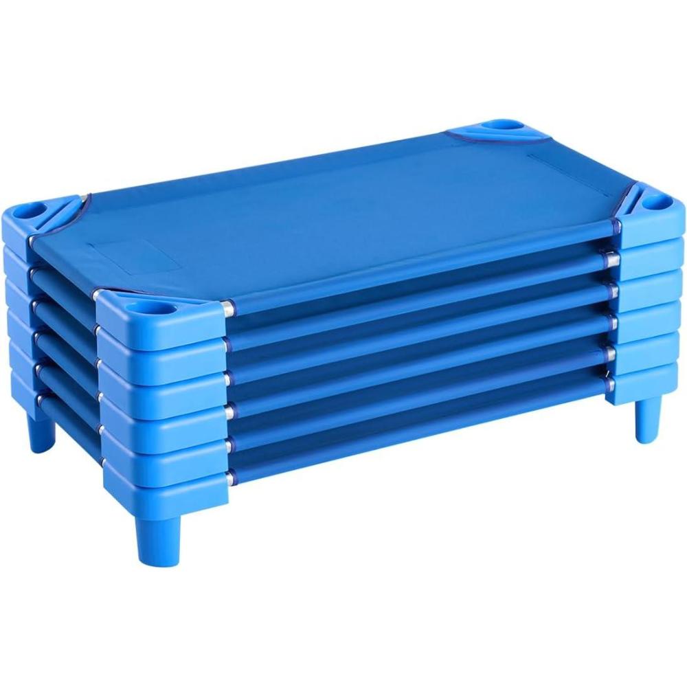 VEVOR Stackable Kiddie Cot, 6 Pack Portable Toddler Nap Cots, Standard Size 52" L x 23" W Daycare Cots for Kids, Preschool Classroom Daycare Beds for Sleeping, Resting, Naptime, Blue(40" L x 23" W - 6Pcs)