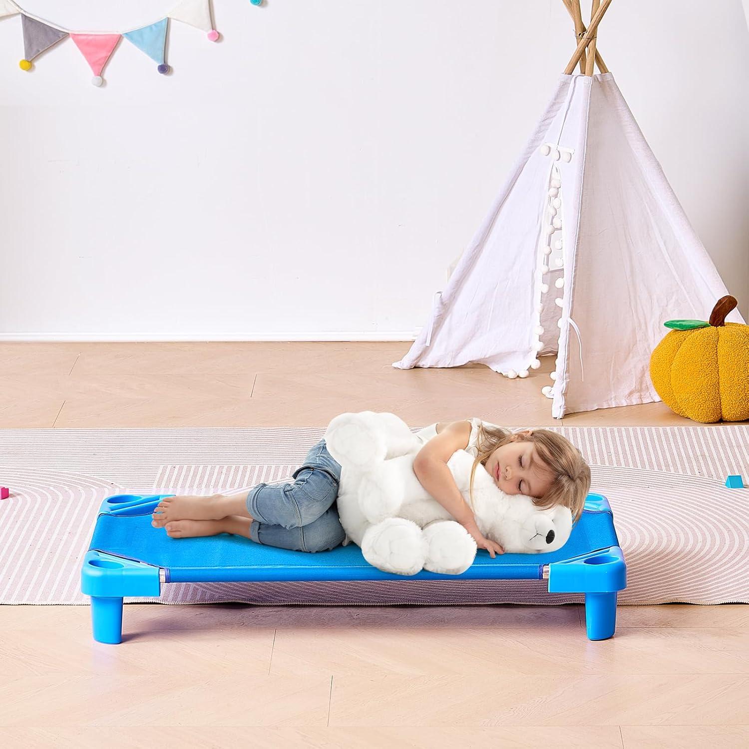 VEVOR Stackable Kiddie Cot, 6 Pack Portable Toddler Nap Cots, Standard Size 52″ L x 23″ W Daycare Cots for Kids, Preschool Classroom Daycare Beds for Sleeping, Resting, Naptime, Blue(40″ L x 23″ W – 6Pcs)