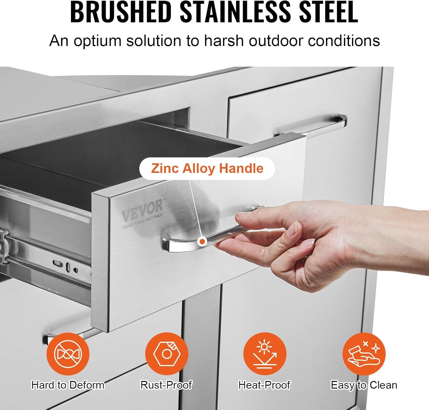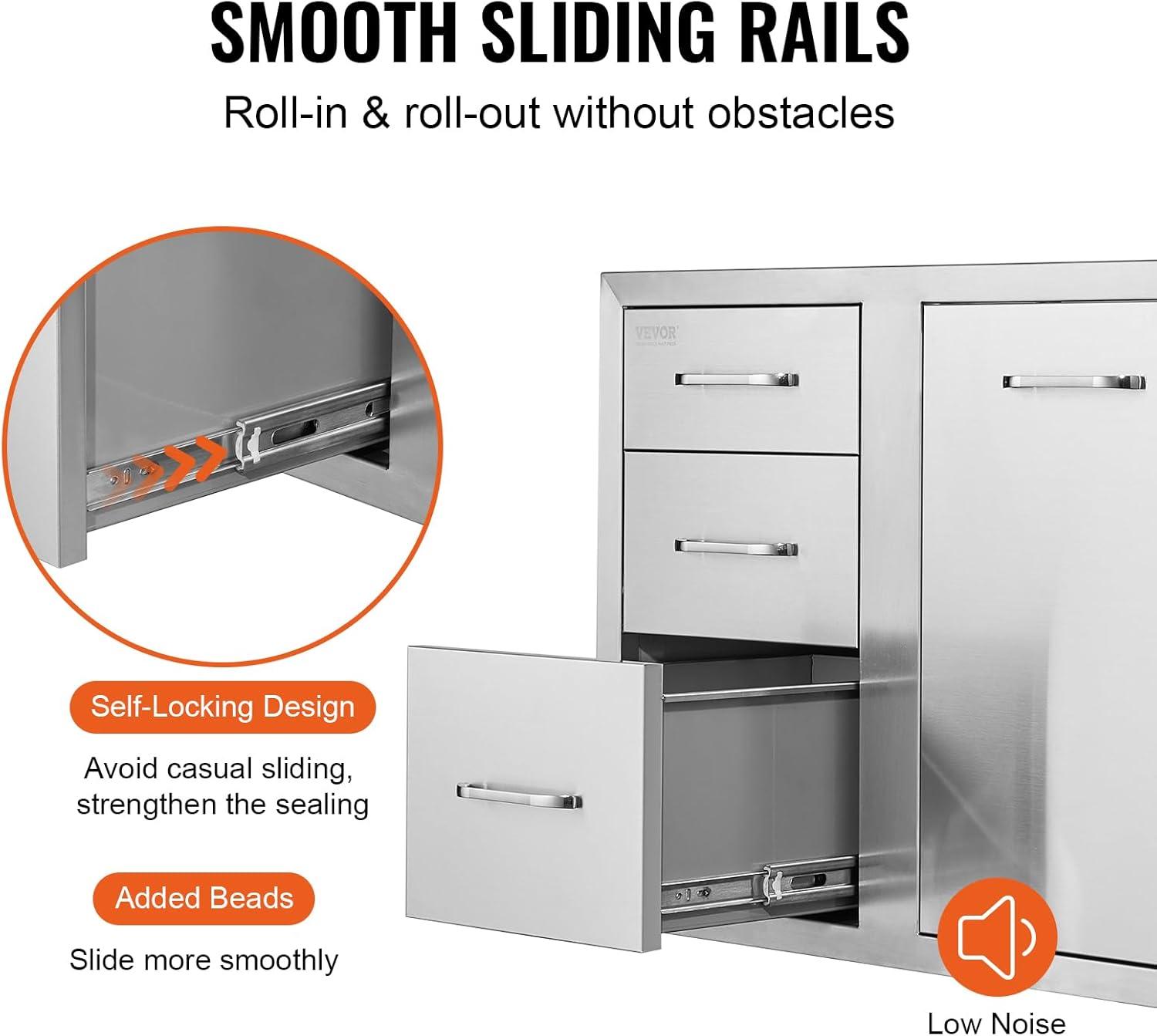 VEVOR Stainless Steel Cabinet, Outdoor Kitchen Door Drawer Combo 29.5" W x 22.6" H x 21.7" D, Access Door/Triple Drawers, Propane Drawer, Adjustable Garbage Ring, BBQ Island Patio Grill Station