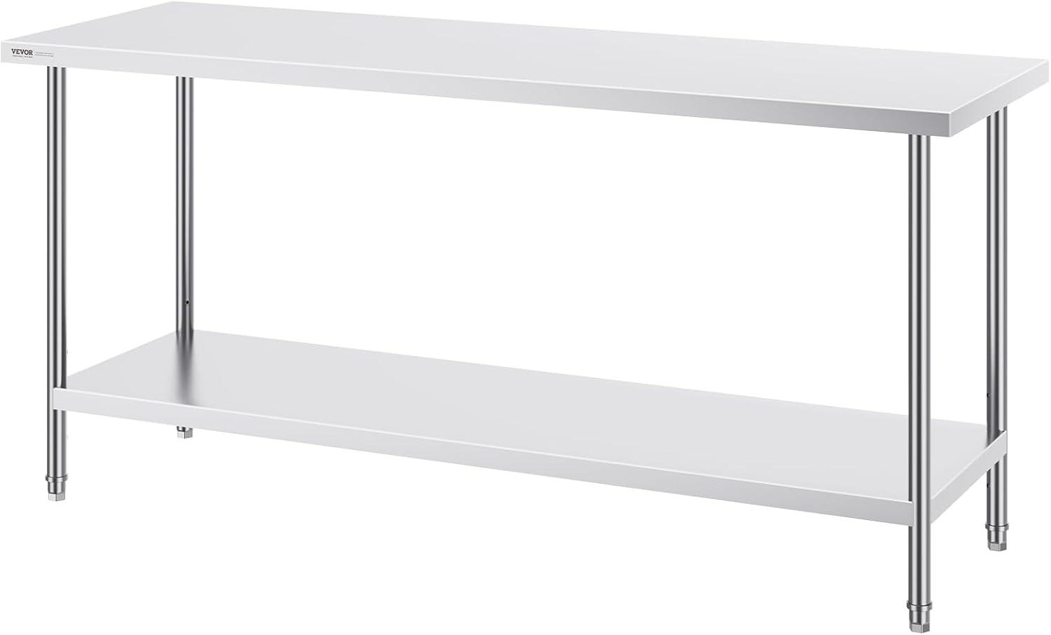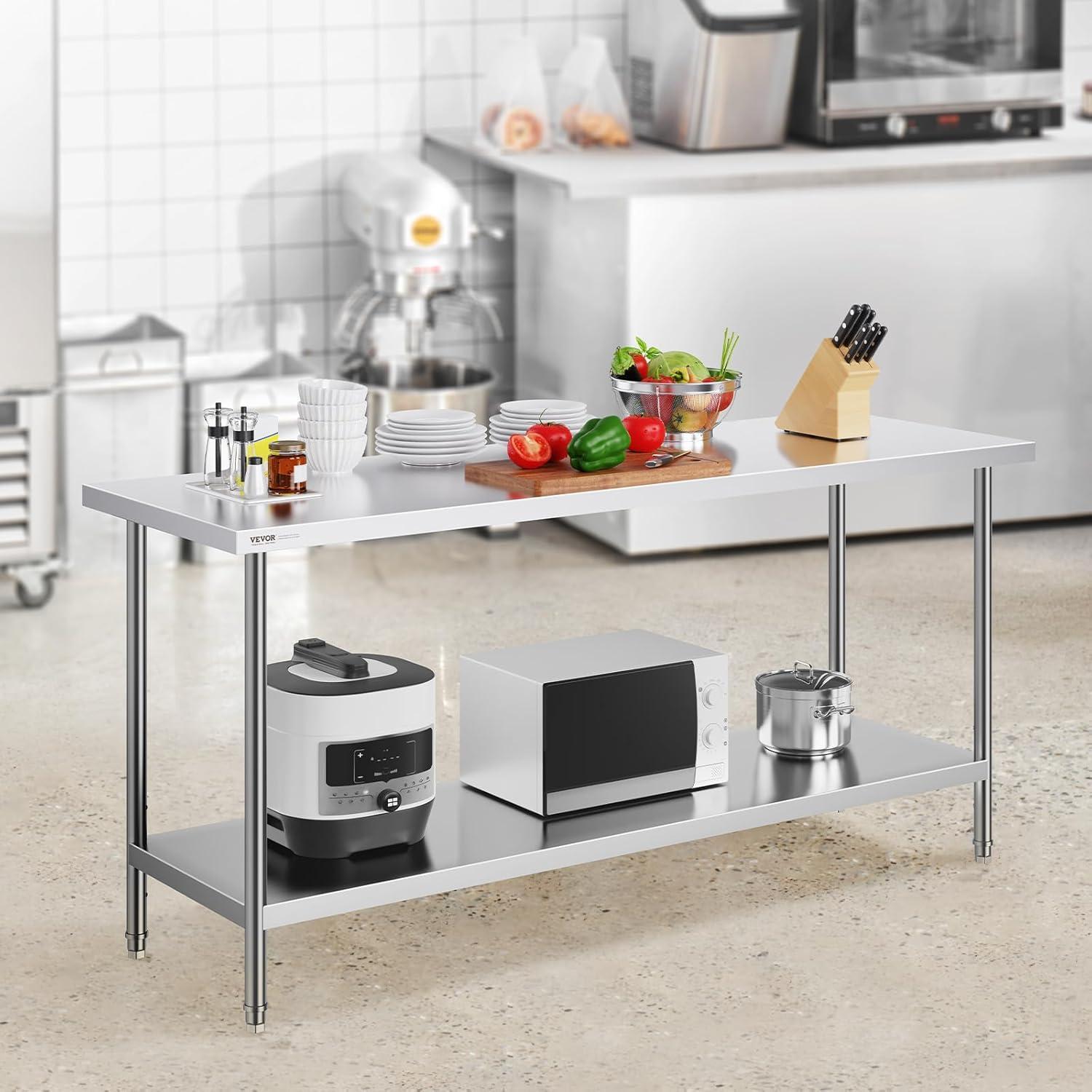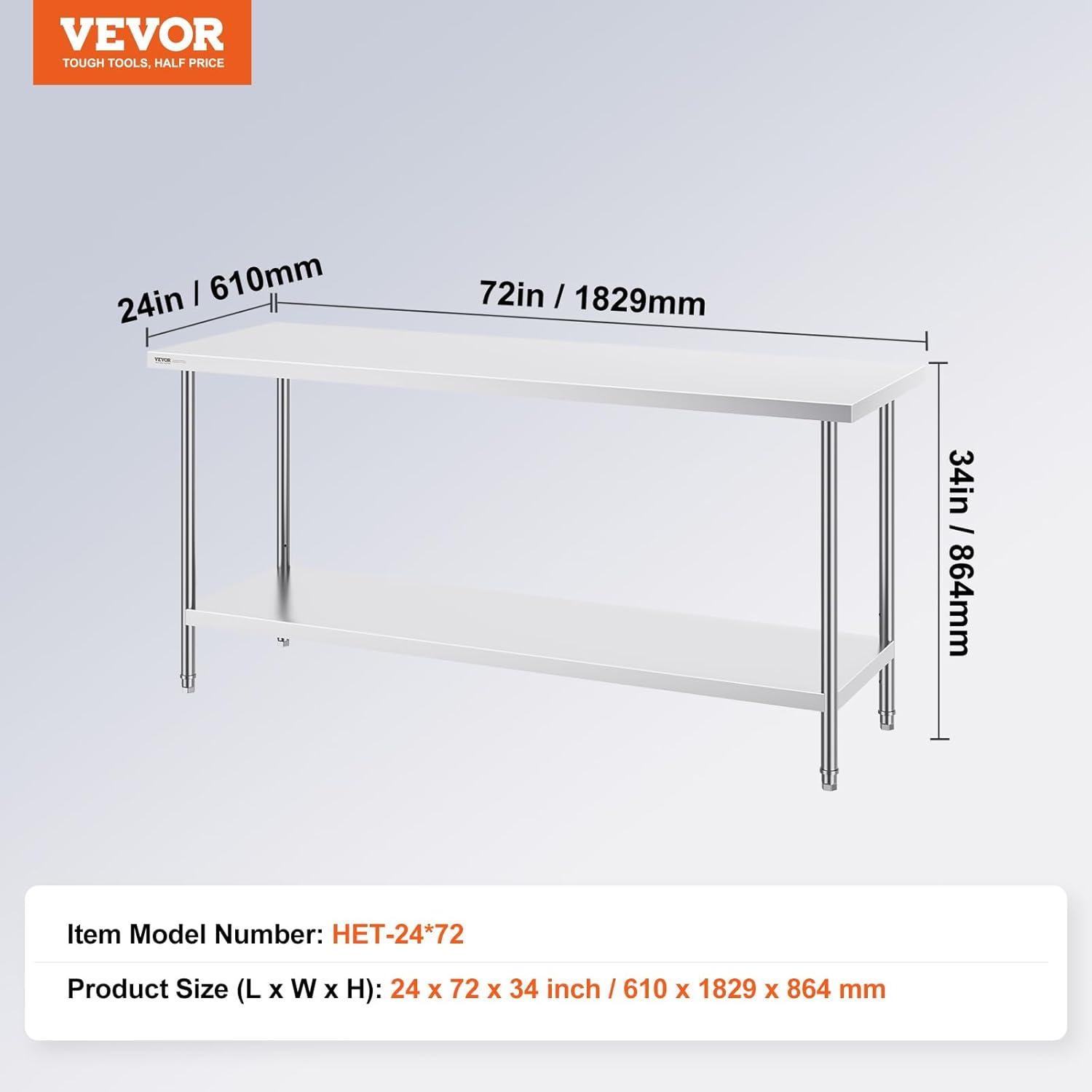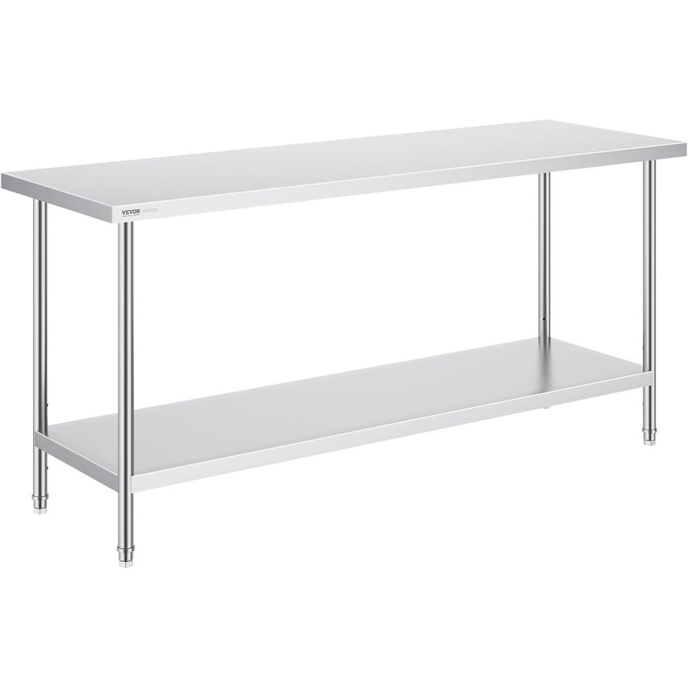 Get more for your money with our exclusive bundle deals on VEVOR Stainless Steel Prep Table, 30 x 72 x 34 Inch, 920 lbs Load Capacity, Heavy Duty Metal Worktable with 3 Adjustable Height Levels, Commercial Workstation for Kitchen Garage Restaurant Backyard(24 x 72 x 34 Inch) and accessories.