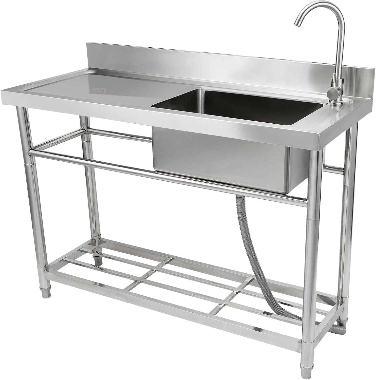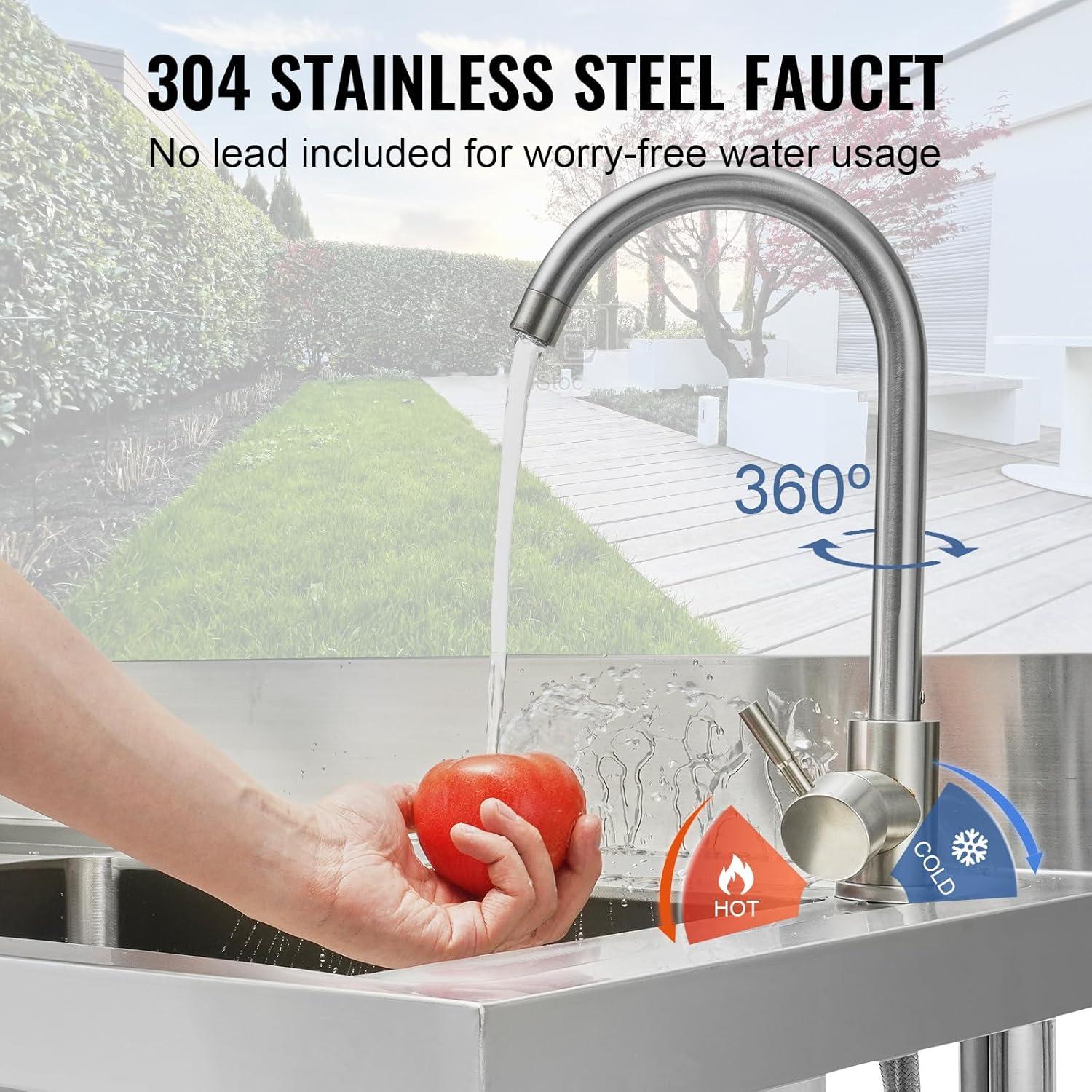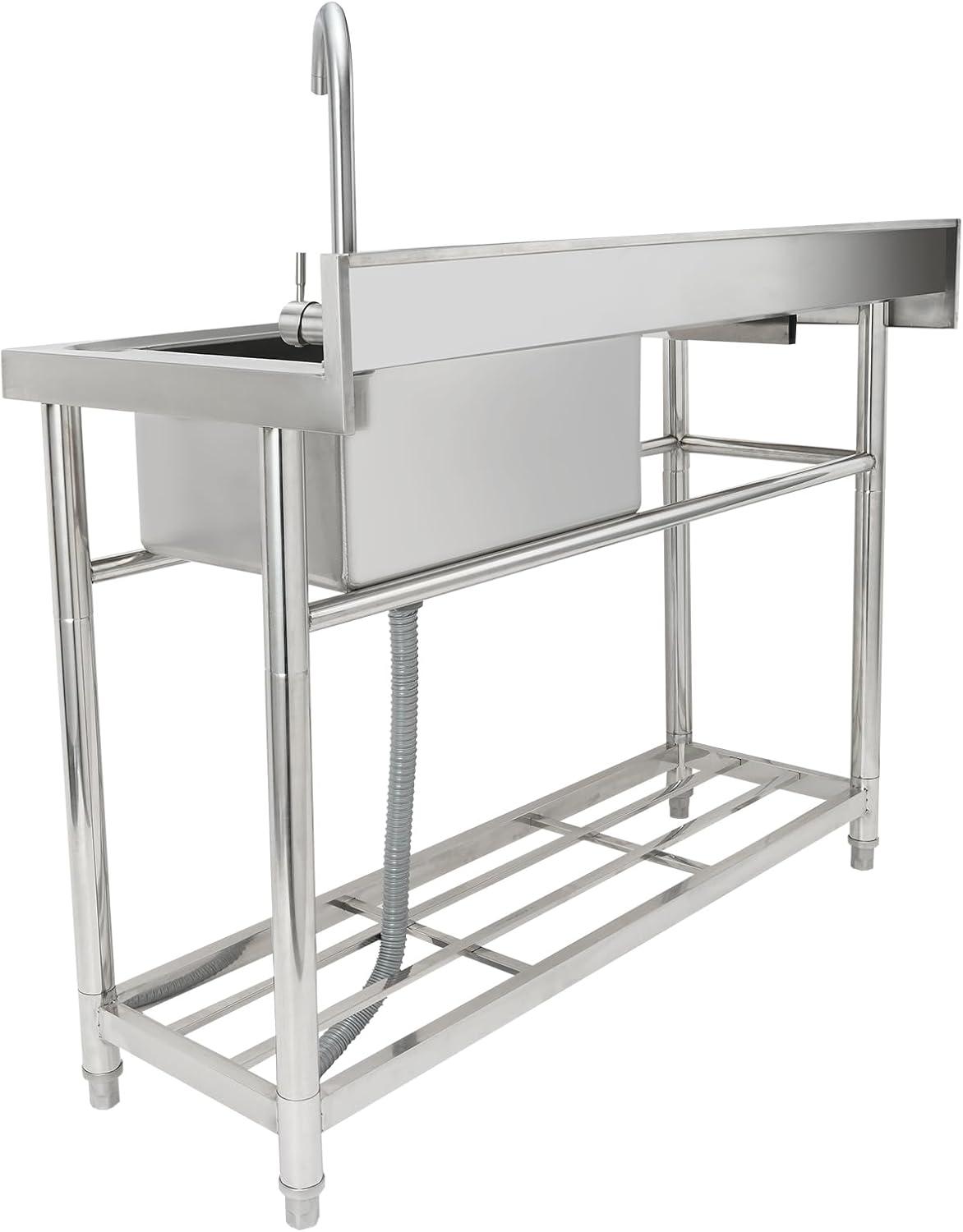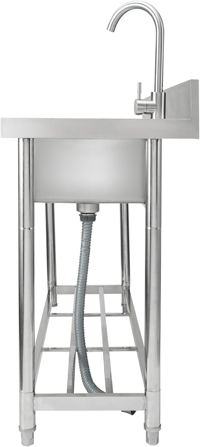 Stainless Steel Sink: This sink is made of high-quality stainless steel, ensuring excellent corrosion resistance, oxidation resistance, and wear resistance. Its all-metal construction guarantees a longer lifespan in most environments. The adjustable table legs provide stability even on uneven surfaces.
