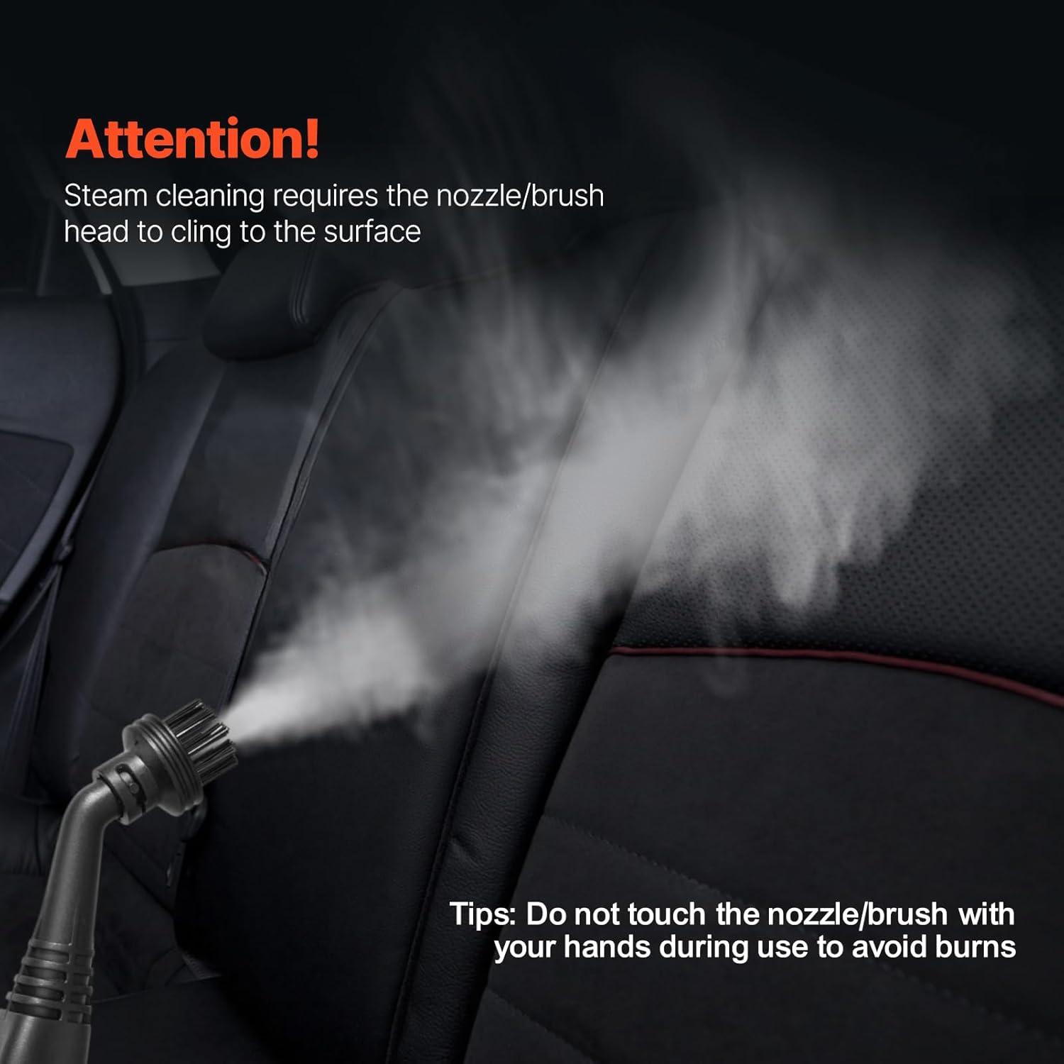 Larger Coverage Area: With an extra-long 4.9 ft / 1.5 m steam hose and 16.4 ft / 5 m power cord, this car detailing steamer offers excellent maneuverability and reach for hard-to-access areas. The low center-of-gravity design, portable handle, and swivel wheels ensure effortless movement and stability during cleaning.