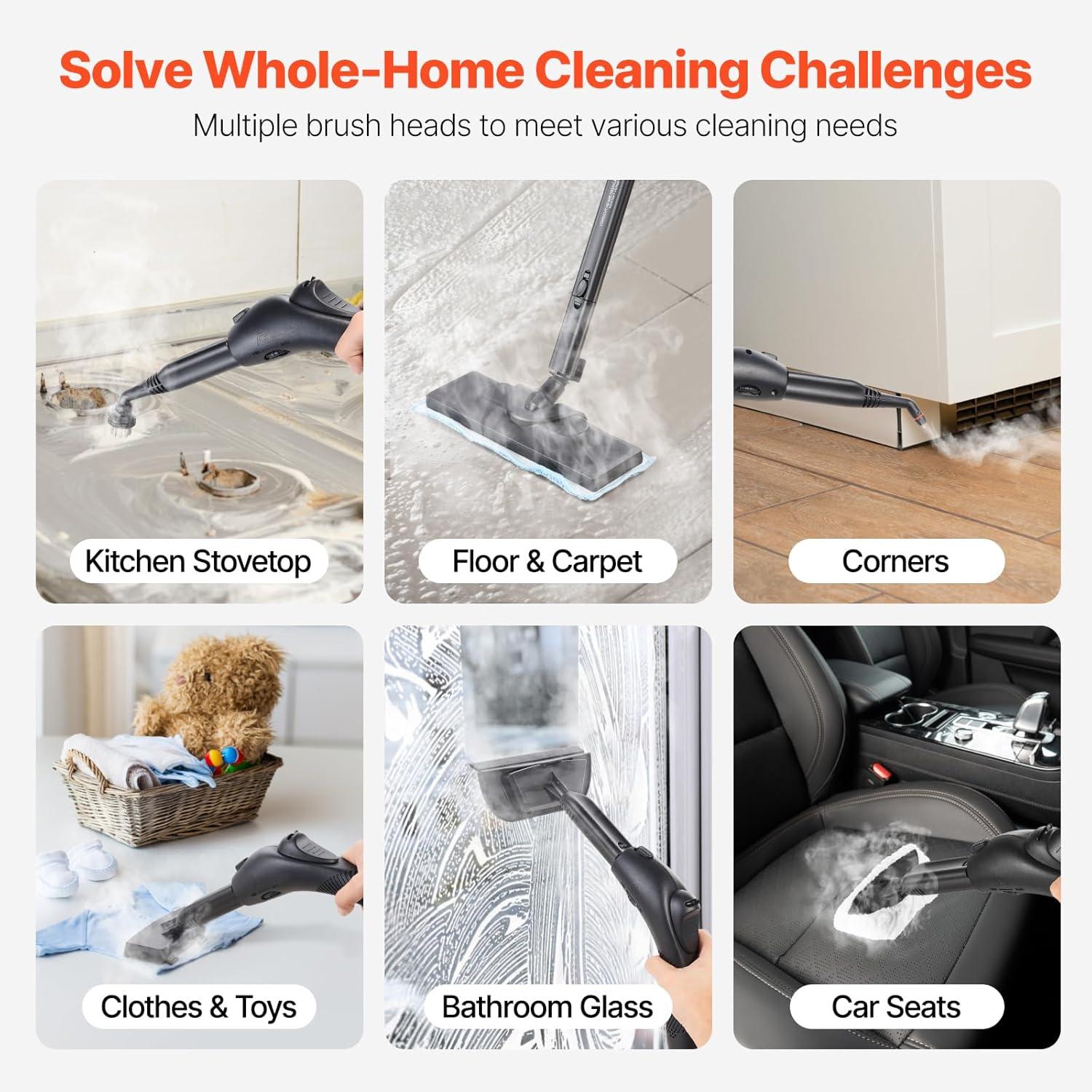 Powerful Steam Cleaning: This multipurpose steam cleaner uses 212 °F steam to clean profoundly and dissolve 99% of grease and stains. It features dry burn prevention, power cut security, and auto-reset for security.