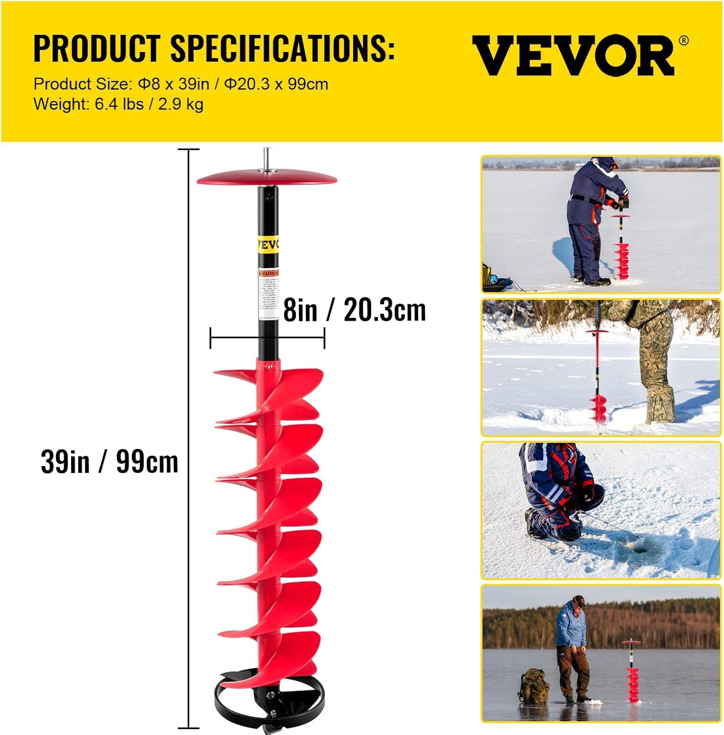 VEVOR Steel Ice Auger Drill Bit, 8″ Diameter Ice Fishing Augers, Weather-Resistant Spiral Drill Bits Replacement with Center Tip, Compatible with Electric/Gas Powered Augers(Steel-Version 2.0)