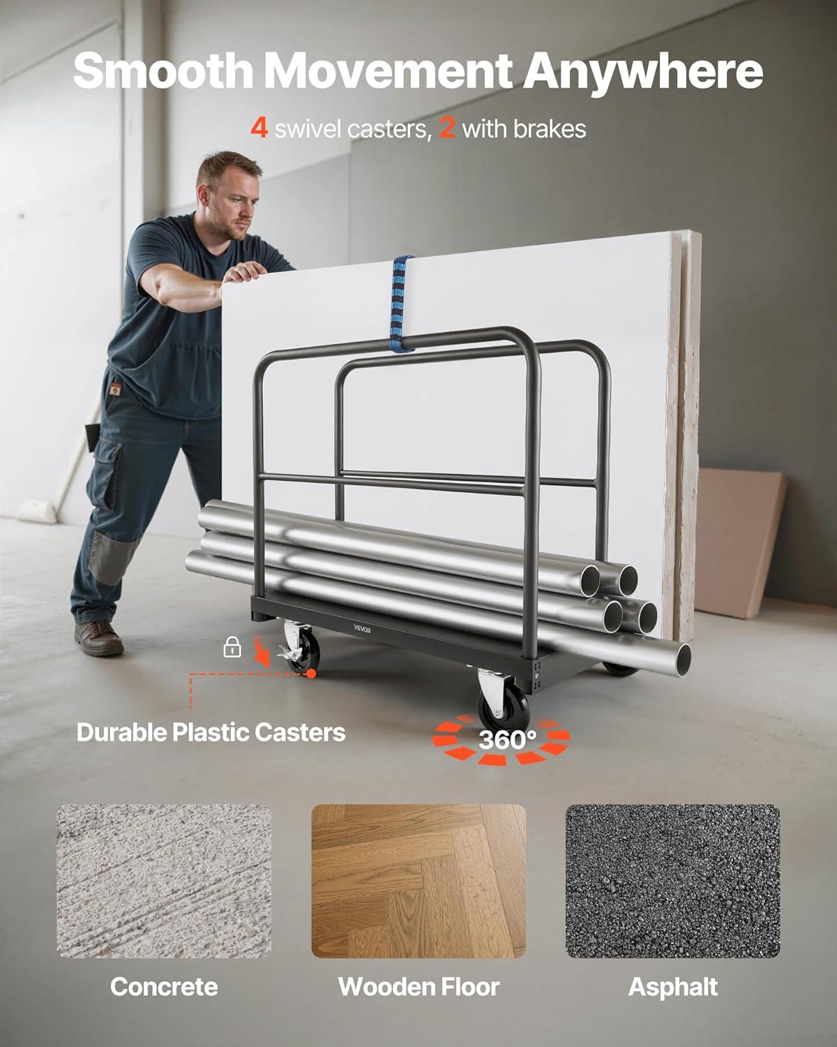 imageVEVOR Steel Panel Truck 1500 LBS Panel Dolly Cart with 5quot Swivel Casters and 3602quot x 2402quot Deck HeavyDuty Drywall Sheet Cart Handling Wall Panel Sheetrock Lumber for Garage Home Warehouse1500 LBS
