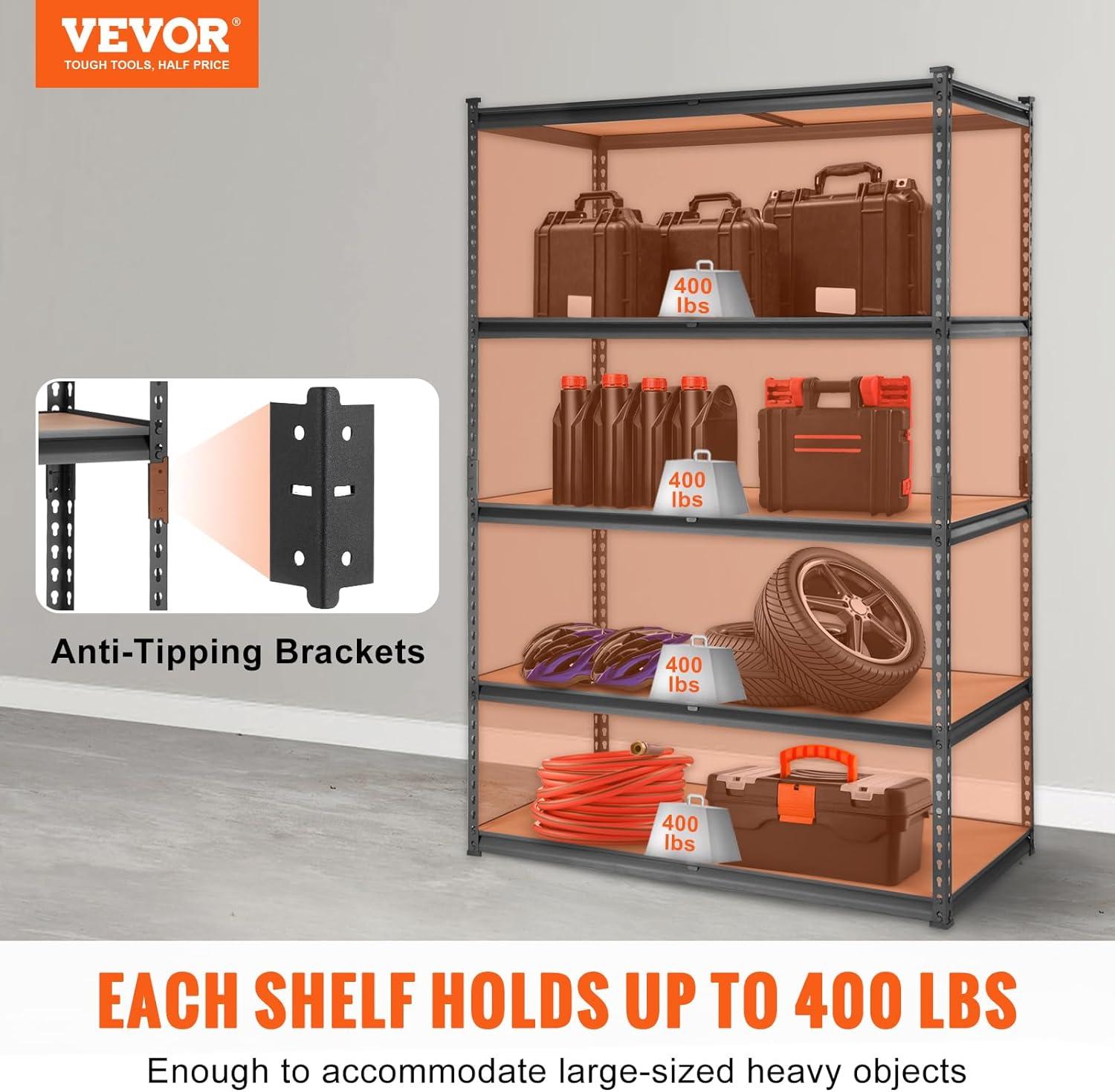 【Load Up Your Life】-Transform your cluttered garage into a neat and organized space with our storage shelving unit. With a 2000 lbs total load capacity, you're free to pile on tools, supplies, or whatever you need in your garage or warehouse. Remember, each shelf is a sturdy 400 lbs carrying companion!
