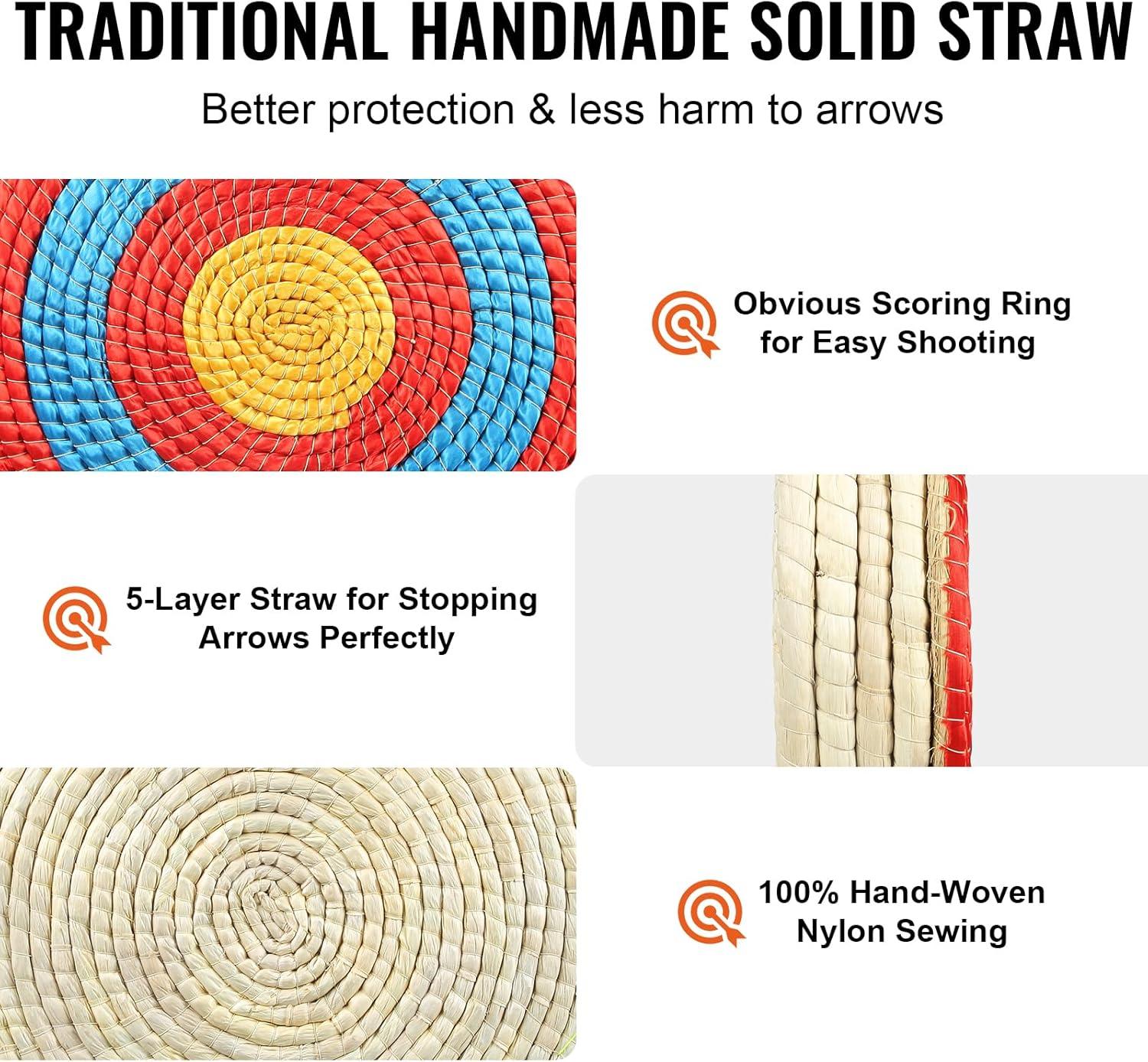 Traditional Handmade Solid Straw: Our arrow target features a solid straw construction. This traditional design offers superior protection to your arrows while minimizing harm. The obvious scoring ring ensures easy and accurate archery target shooting, and the 3-layer straw effectively stops arrows in their tracks. Plus, it's 100% hand-woven with durable nylon sewing for long-lasting quality.