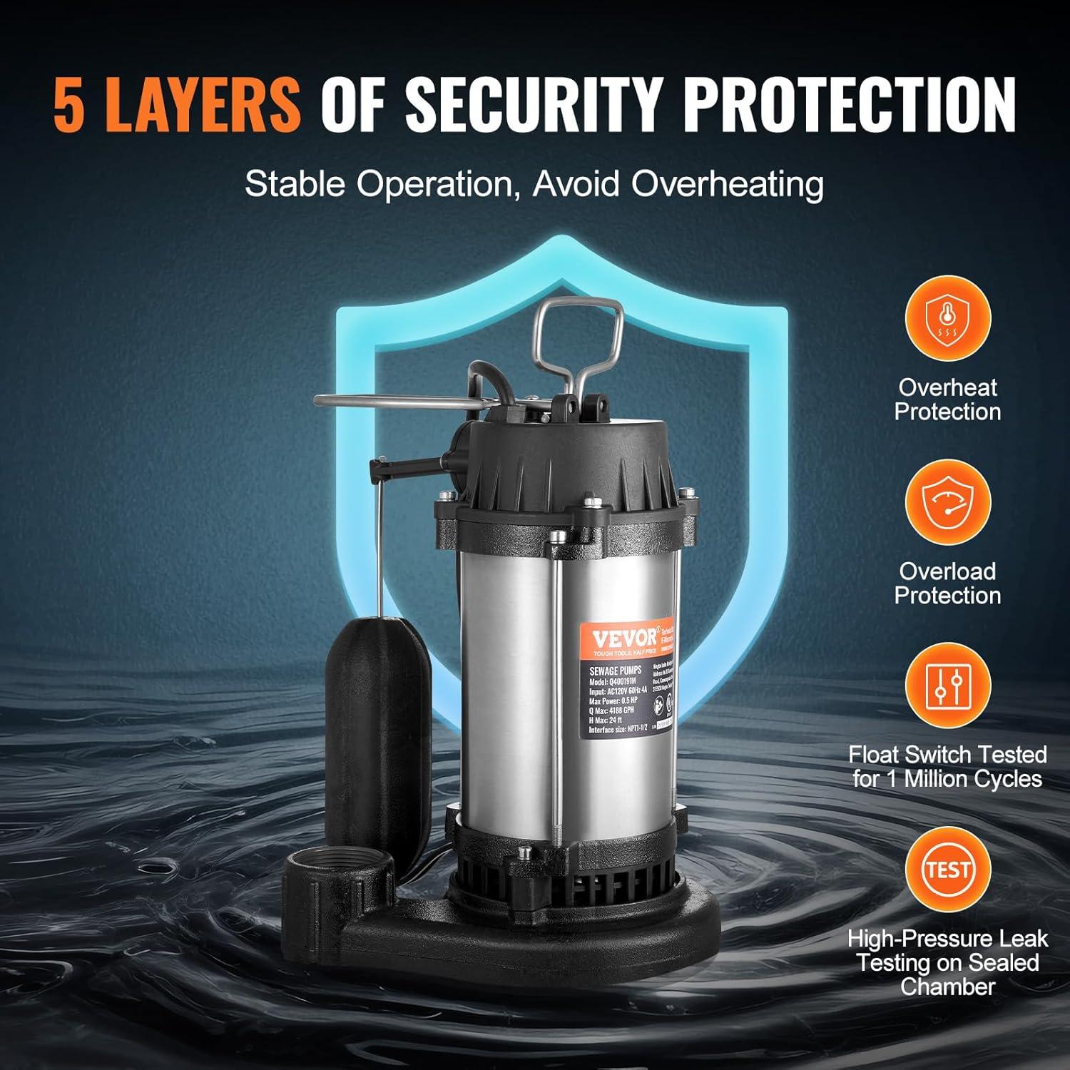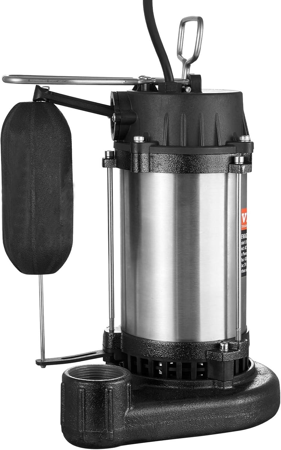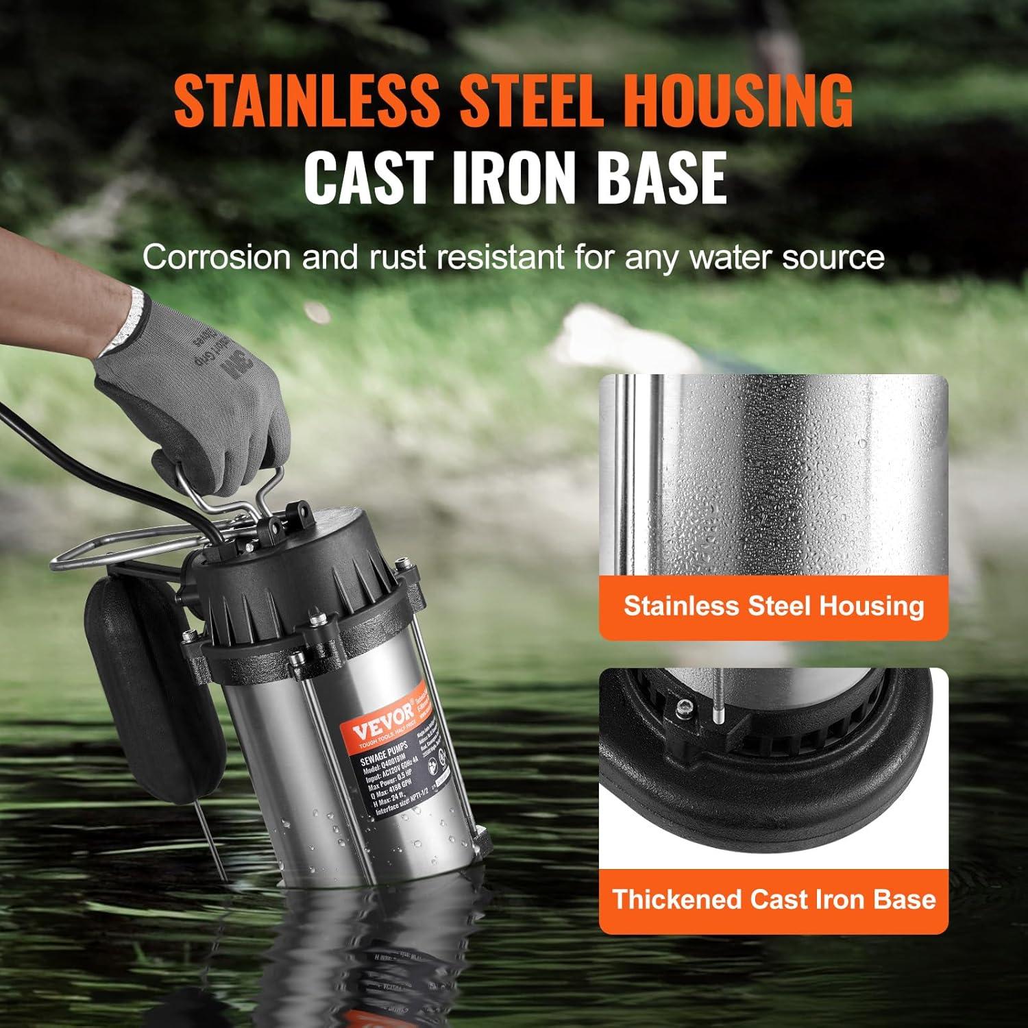 imageVEVOR Submersible Sump Pump 05HP 4188GPH 24 ft Lift Cast Iron Sewage Water Pump with 10 ft Power Cord and Automatic Float Switch Stainless Steel for Clean Flooded Basement Yard Farm Sewer34 HP