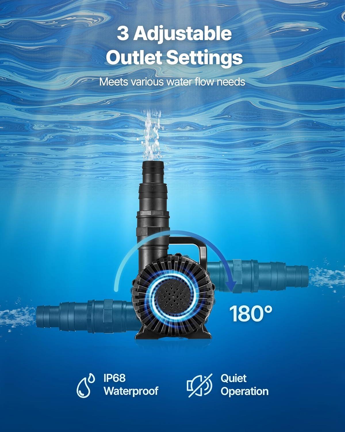 High Flow, Big Power: This submersible water pump pushes up to 4500GPH with a 280W motor and lifts water up to 16.5 ft. It's a strong helper for pools, fountains, ponds, hydroponics, and more