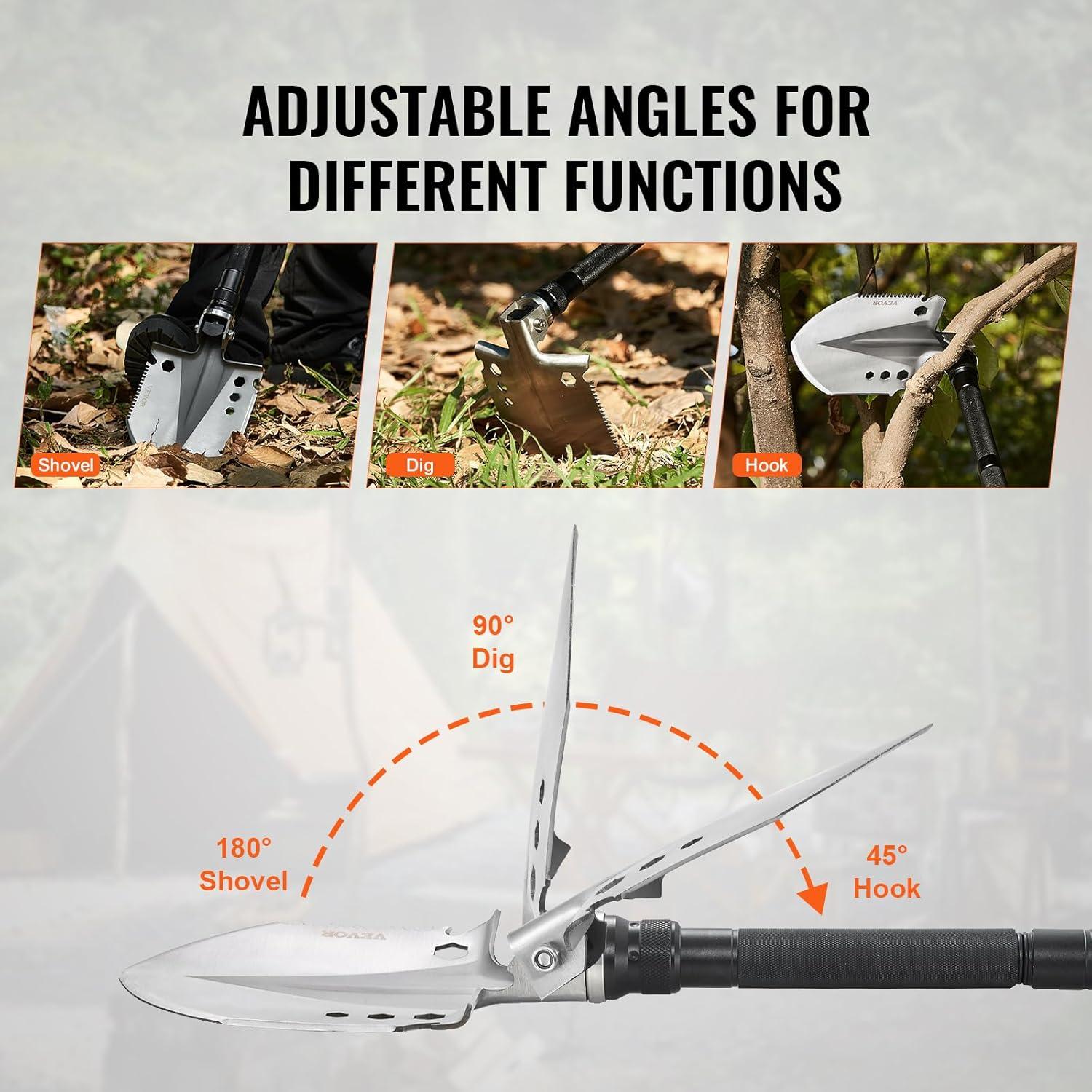 VEVOR Survival Shovel Survival Axe, 28-in-1 Camping Folding Shovels with Hatchet, Stainless Steel Tactical Shovel Hatchet Combo, Multifunctional Emergency Survival Gear Equipment for Camping Hiking(28 in 1)