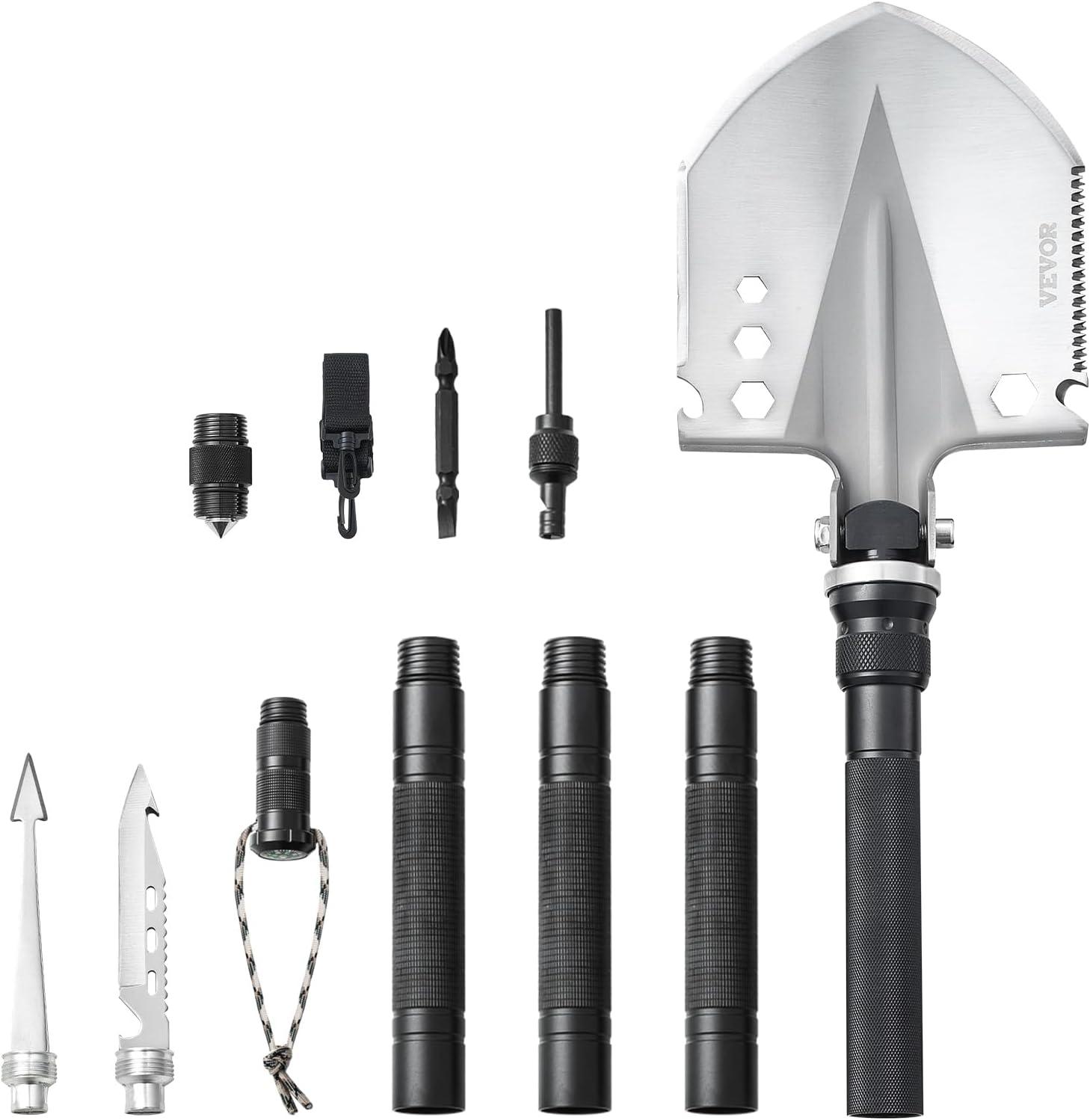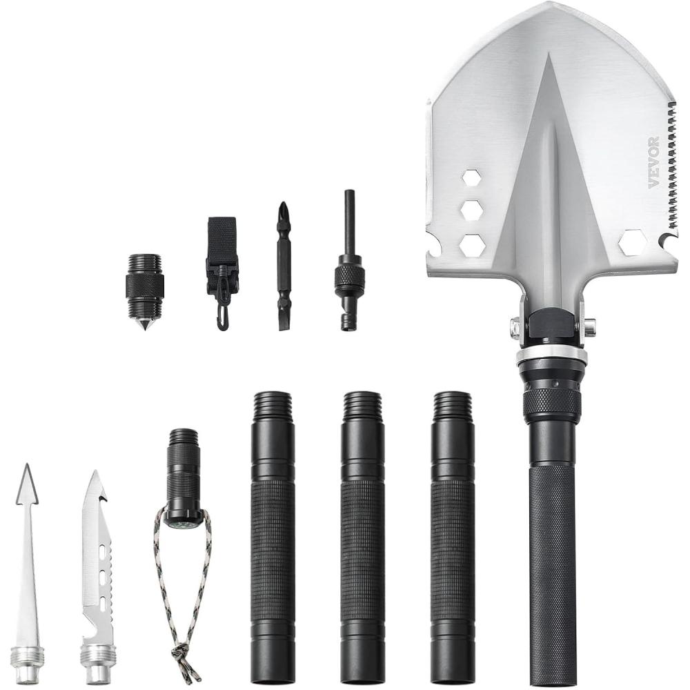 VEVOR Survival Shovel Survival Axe, 28-in-1 Camping Folding Shovels with Hatchet, Stainless Steel Tactical Shovel Hatchet Combo, Multifunctional Emergency Survival Gear Equipment for Camping Hiking(11 in 1)