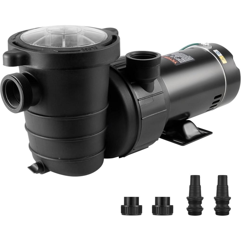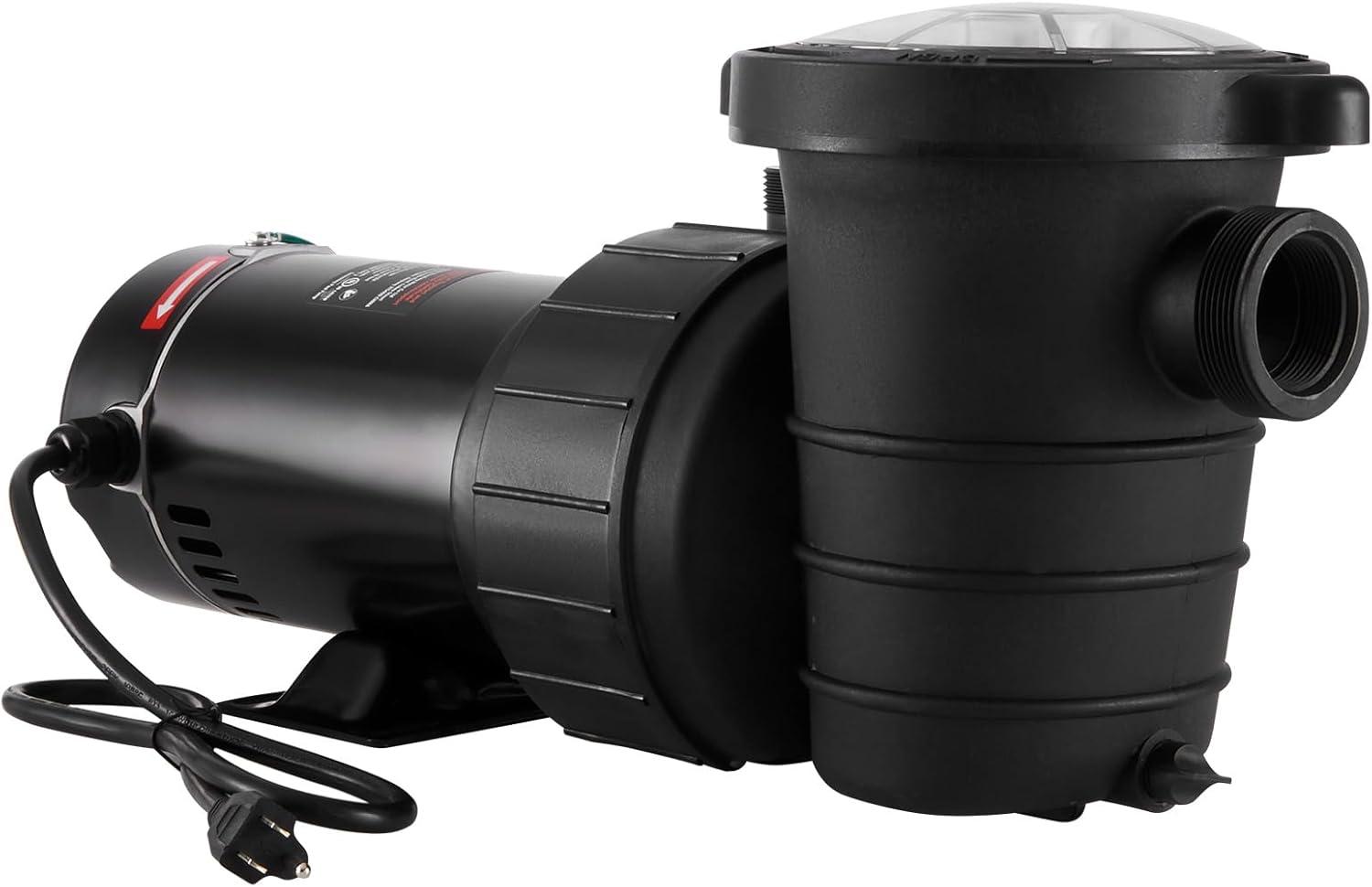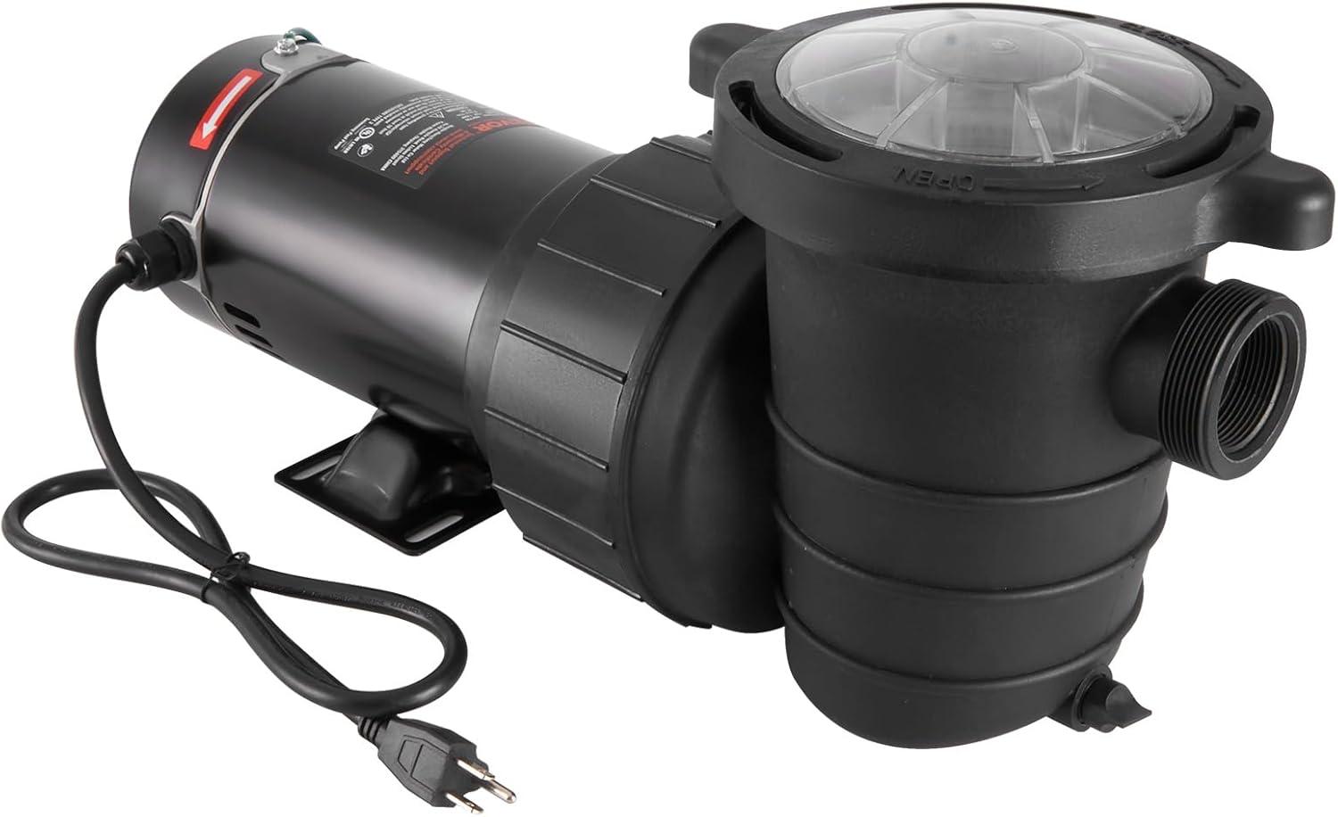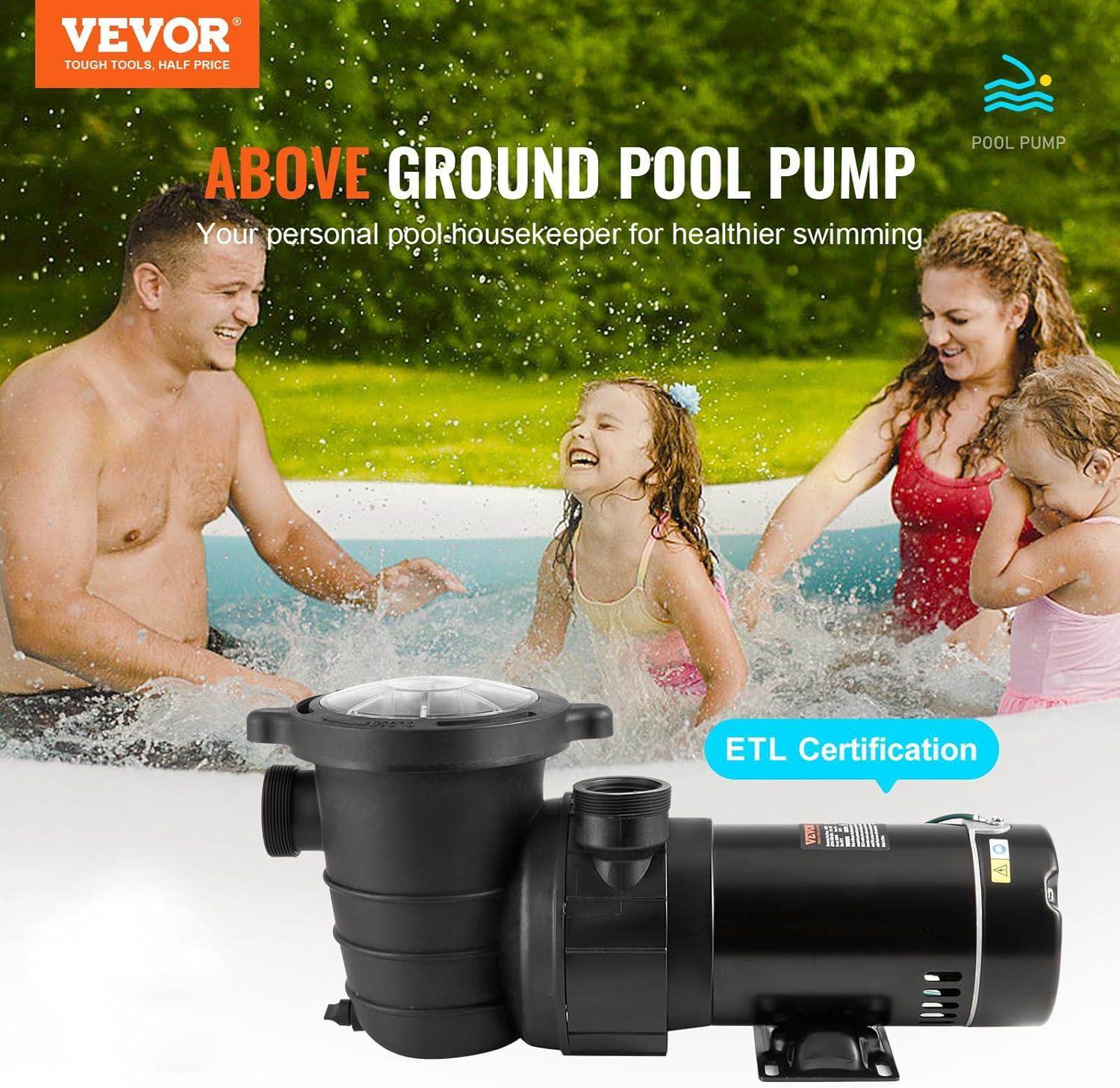 VEVOR Swimming Pool Pump 1.5HP 115V 1100W, Single Speed Pumps for Above Ground, Powerful Pool Pumps with Strainer Filter Basket, 5280 GPH Max. Flow, Certification of ETL for Security(Single Speed)