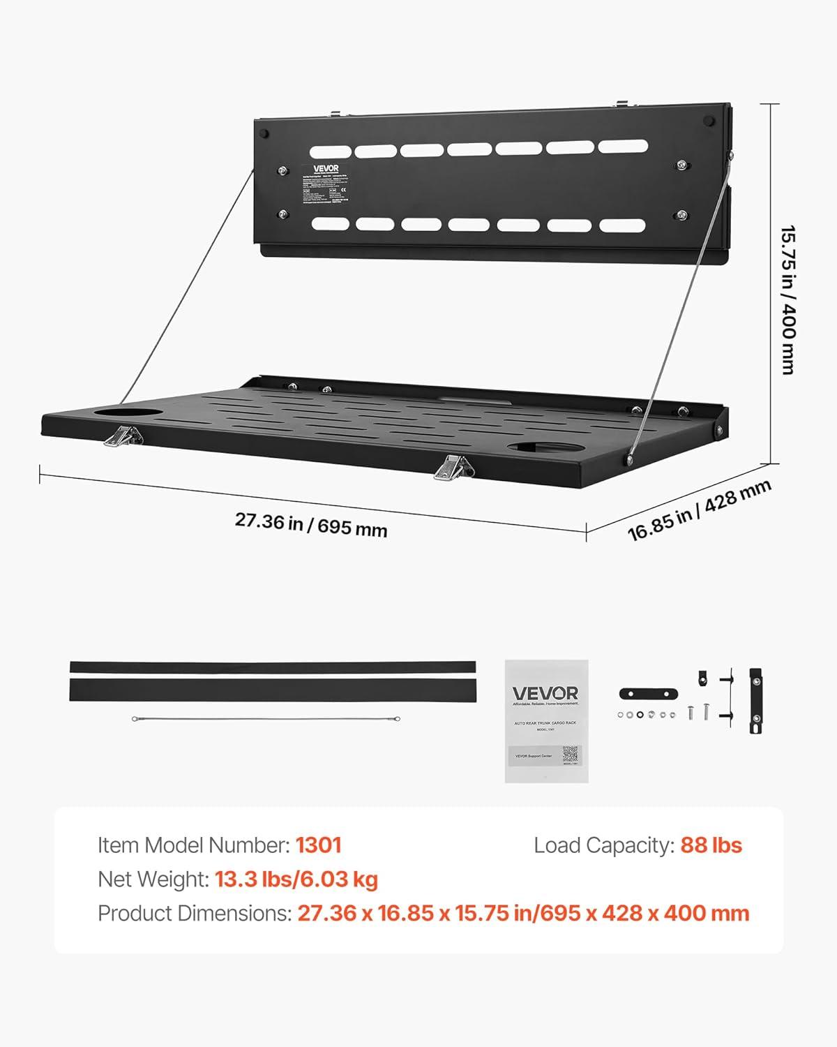 Foldable Design: The tailgate storage cargo shelf features a convenient foldable structure that easily collapses after use, saving space and keeping your vehicle organized. It helps maintain a neat and clutter-free cargo area