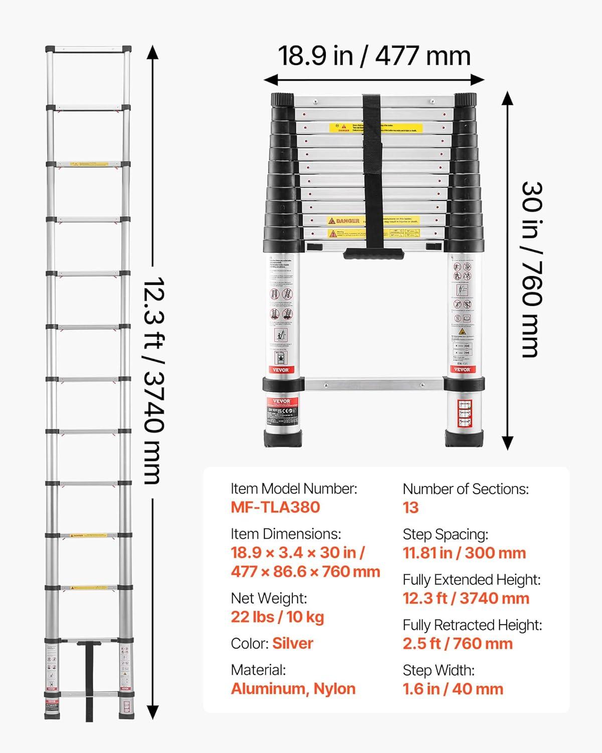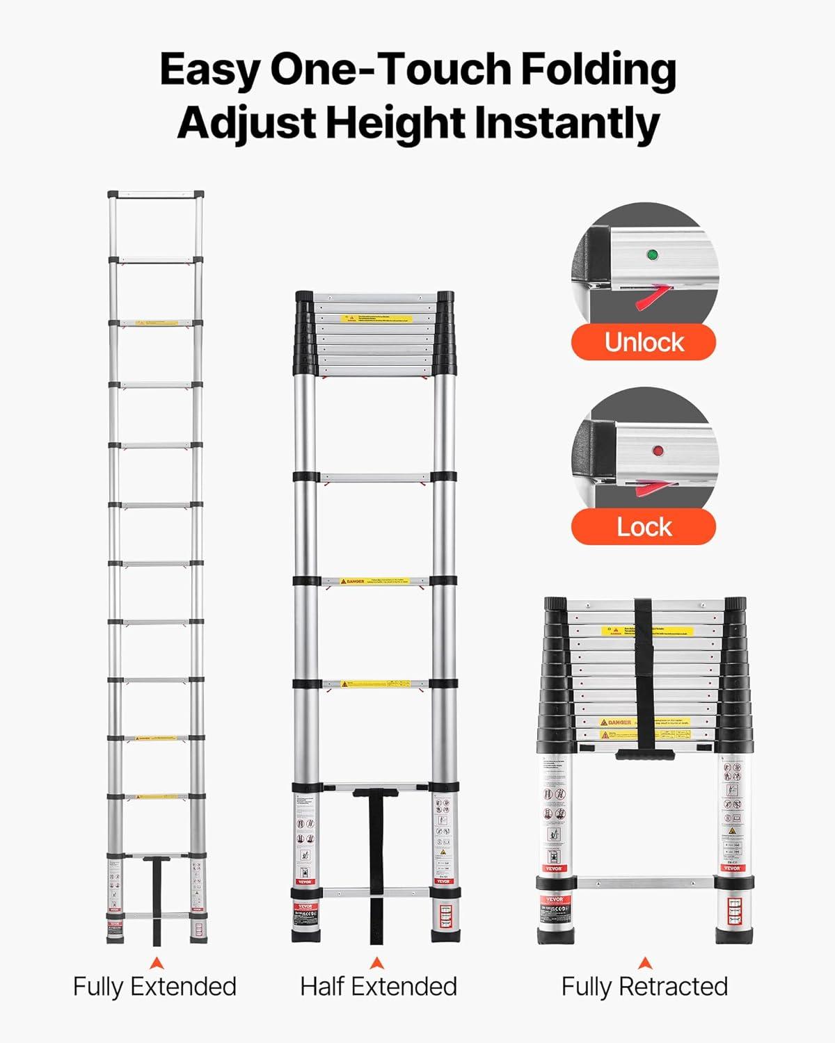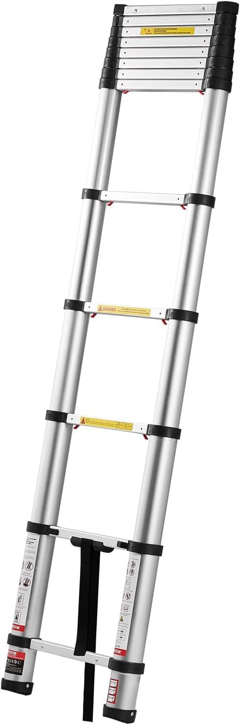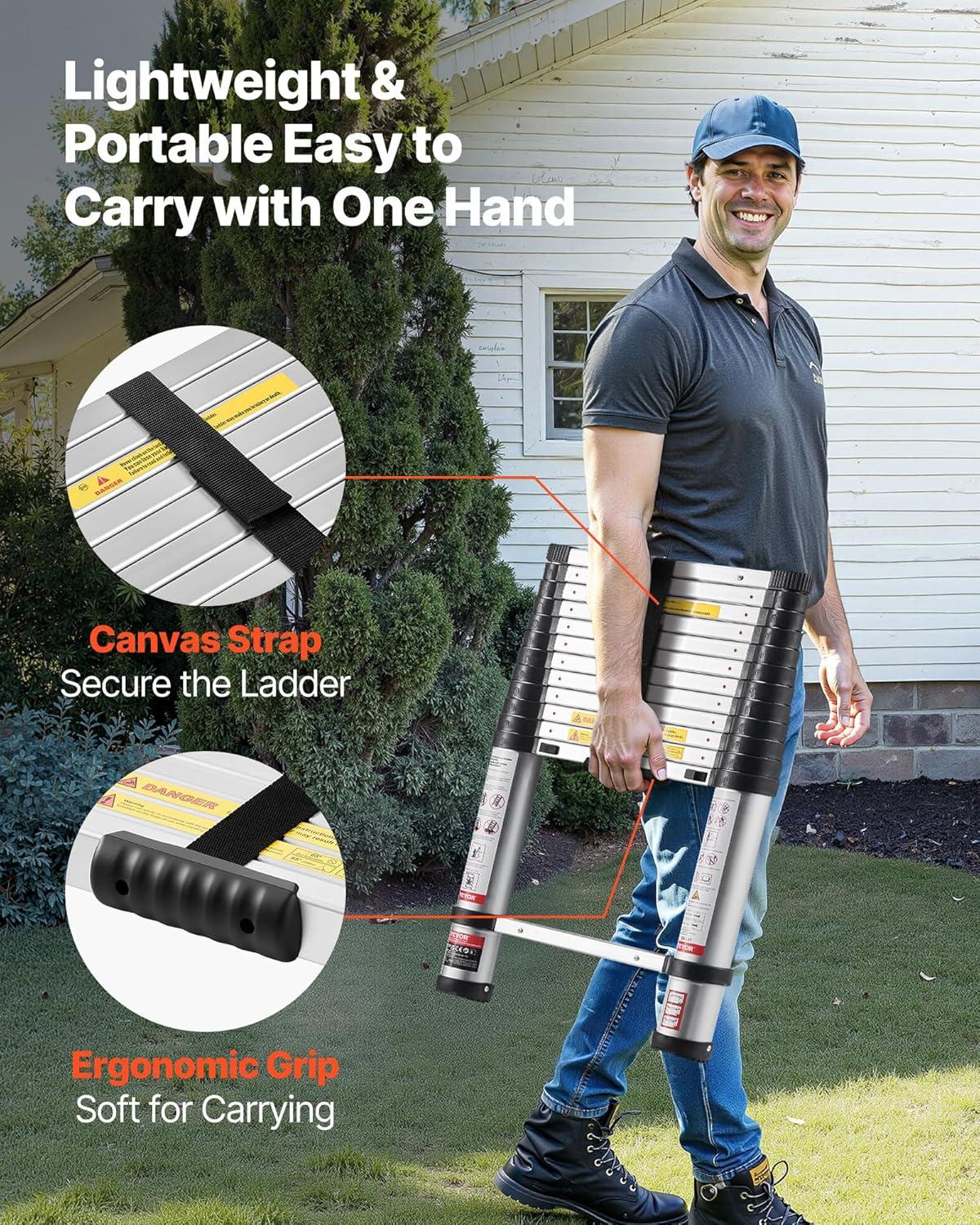 VEVOR Telescoping Ladder, 20.3FT Aluminum Lightweight Extension Ladder, Multi-Button Retraction Collapsible Ladder, 375 LBS Capacity with Non-Slip Feet, Portable Compact Ladders for Home, RV, Loft(12.5 Feet-NEW)