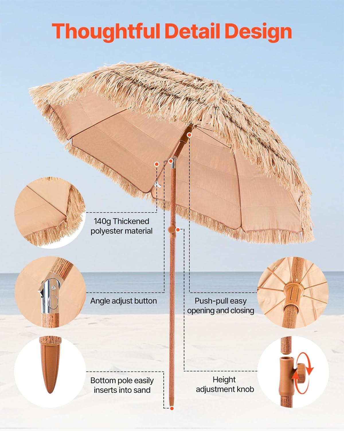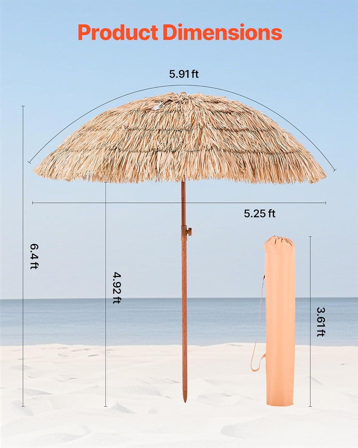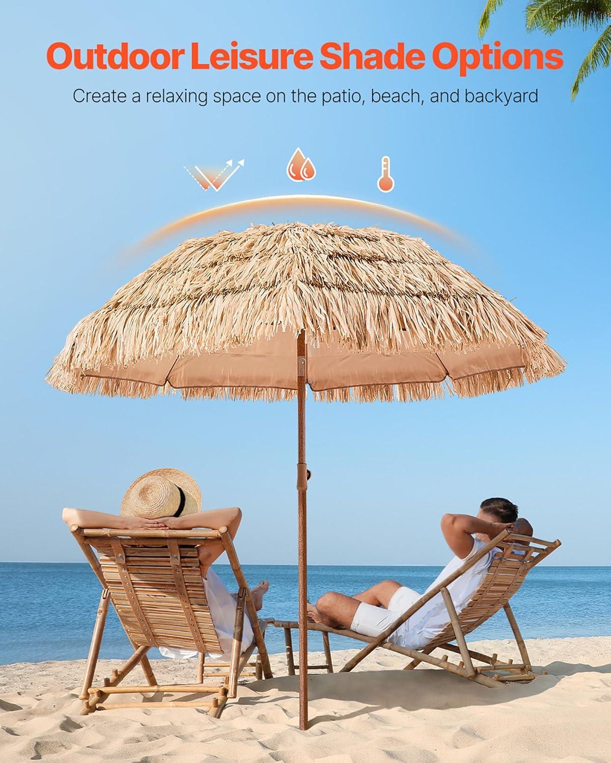 VEVOR Tiki Umbrella,Thatched Patio Umbrella with Tilt, Hawaiian Style Beach Parasol with Durable PP Thatch Grass Pool Umbrellas for Beach, Patio, Poolside, Backyard & Garden(1-Tier)
