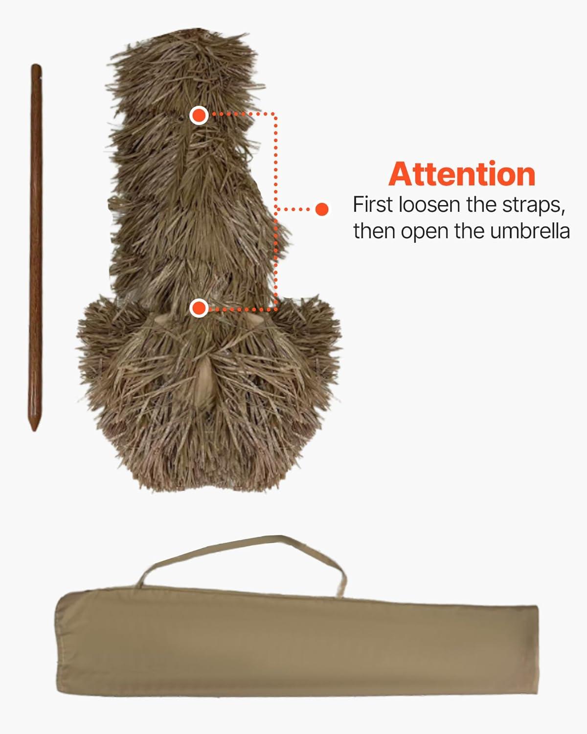 imageVEVOR Tiki UmbrellaThatched Patio Umbrella with Tilt Hawaiian Style Beach Parasol with Durable PP Thatch Grass Pool Umbrellas for Beach Patio Poolside Backyard ampamp Garden1Tier