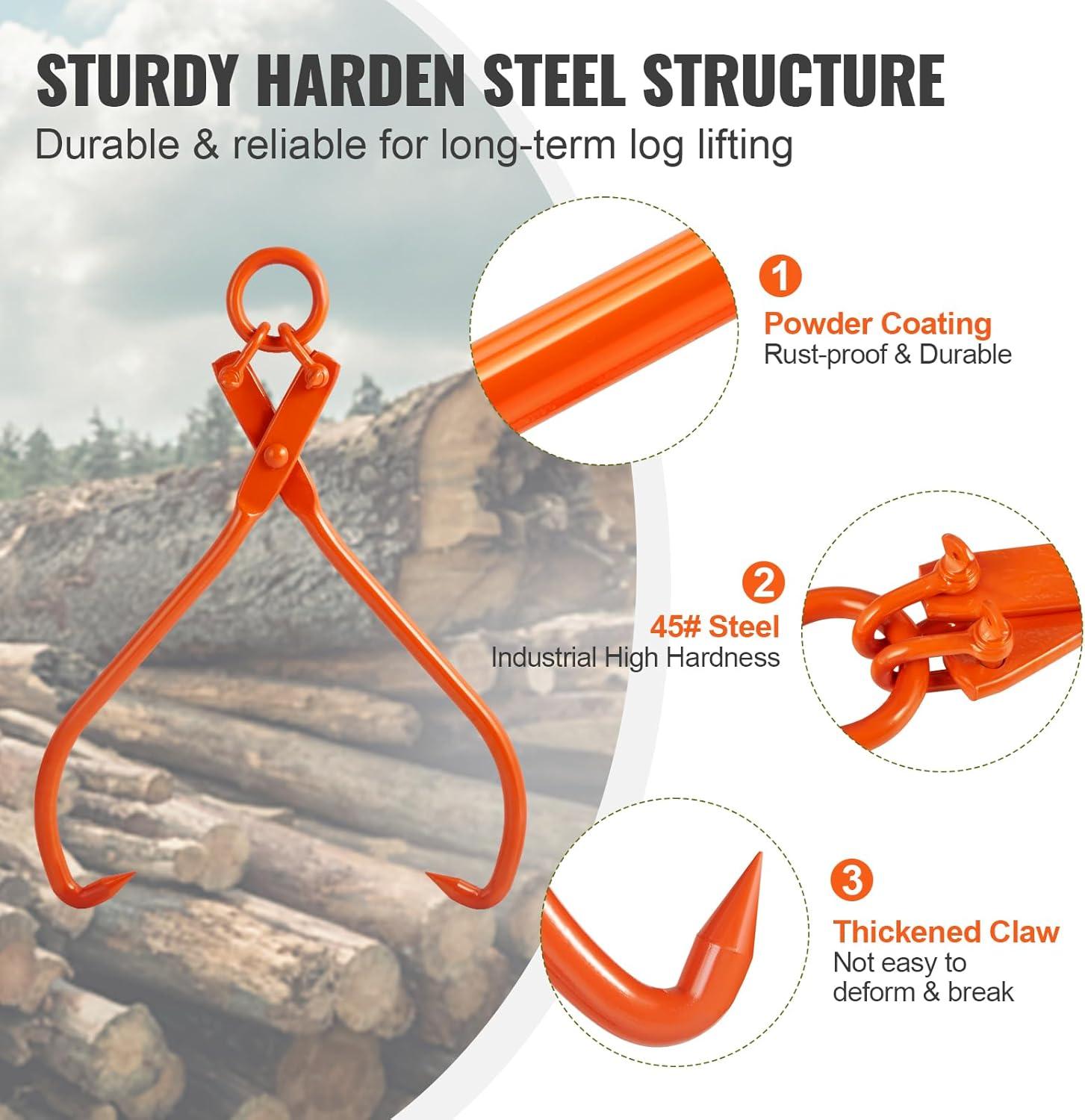 Secure Hook Claws: Featuring a powerful eagle claw design, the logging tongs are specially designed to securely embed into the wood during log handling. As the pulling force increases, the claws tighten, providing enhanced security and grip