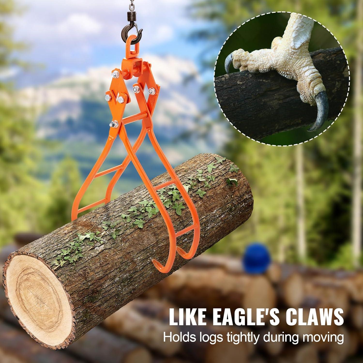 VEVOR Timber Claw Hook, 28 inch 4 Claw Log Grapple Logging Tongs, Swivel Steel Log Lifting Tongs 31″ Max Opening, Eagle Claws with 2205LBS/1000kg Loading Capacity for Tractors, ATVs, Trucks, Forklifts(Simple)