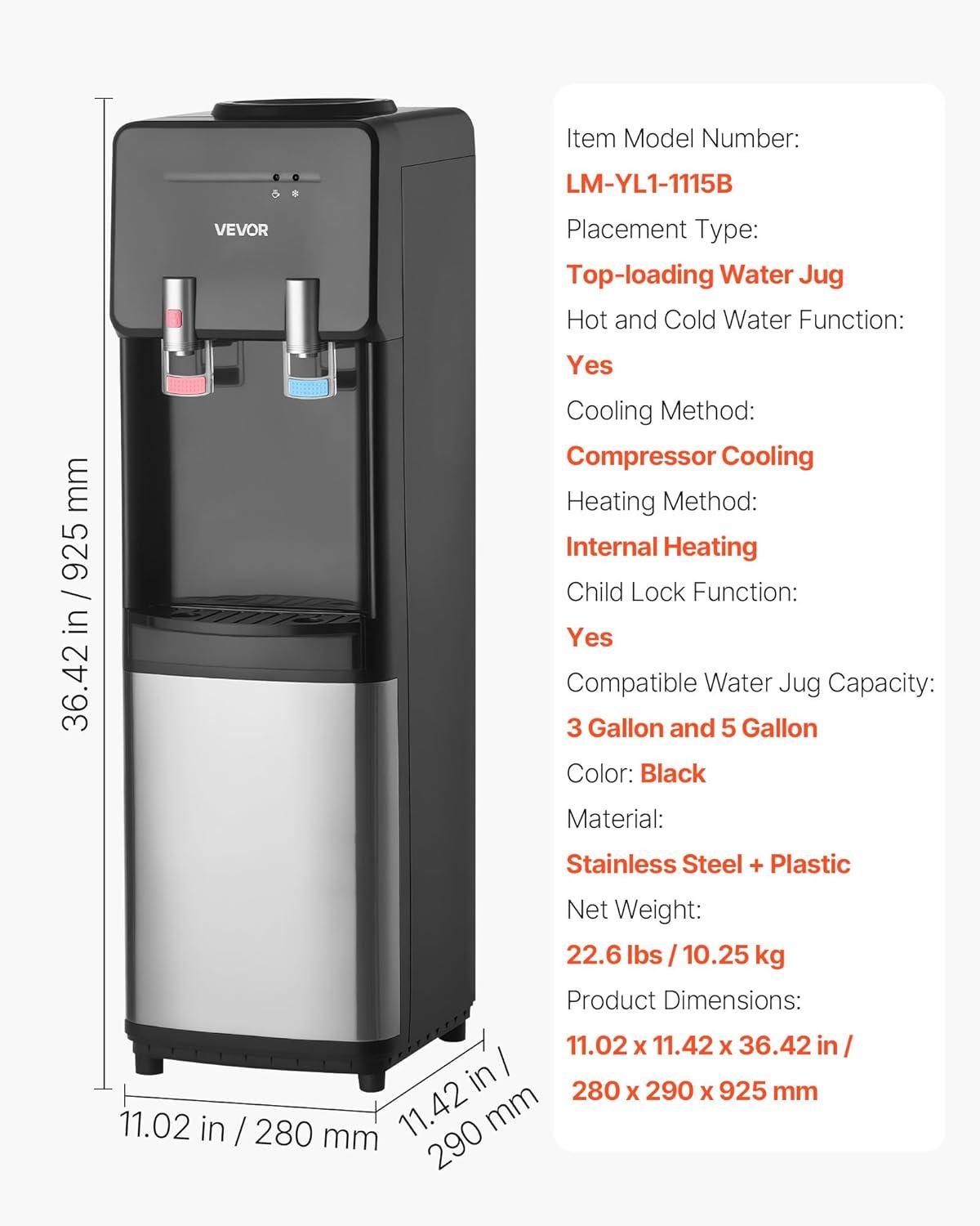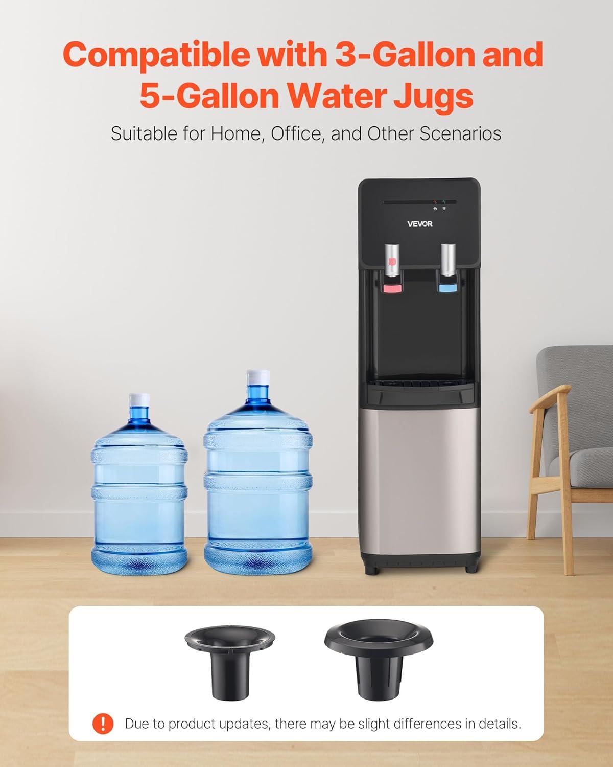 Compatible with Multiple Water Buckets: Designed with a top-loading water bucket structure, you can place 3 or 5 gallons water jugs on top to experience refreshing cold water and hot drinks. The sealed heating and cooling system operates at ≤50dB, ensuring minimal disruption during work