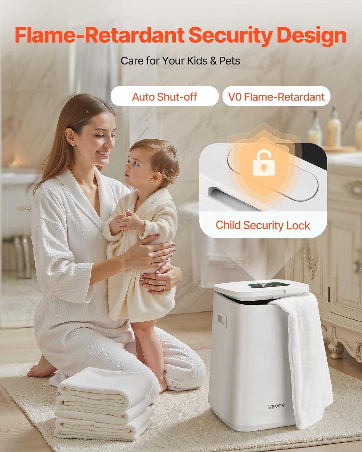 5-Side 360° Even Heating: Vevor's towel warmers for bathroom uses a 5-side 360° heating system (bottom + walls) to keep every inch of your towel toasty-warm—no more cold spots or uneven heat!