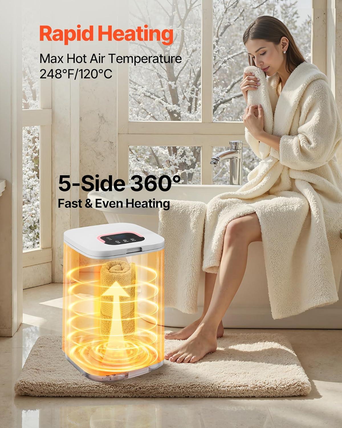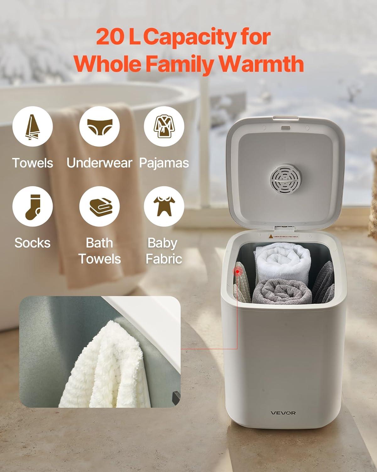 20L Capacity Blanket Warmer: Fits 4 large towels, underwear, robes or pajamas—great for the whole family to enjoy a home spa experience.