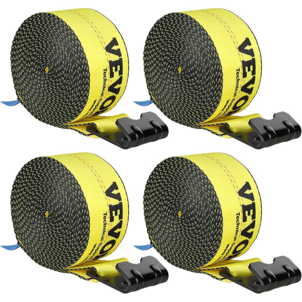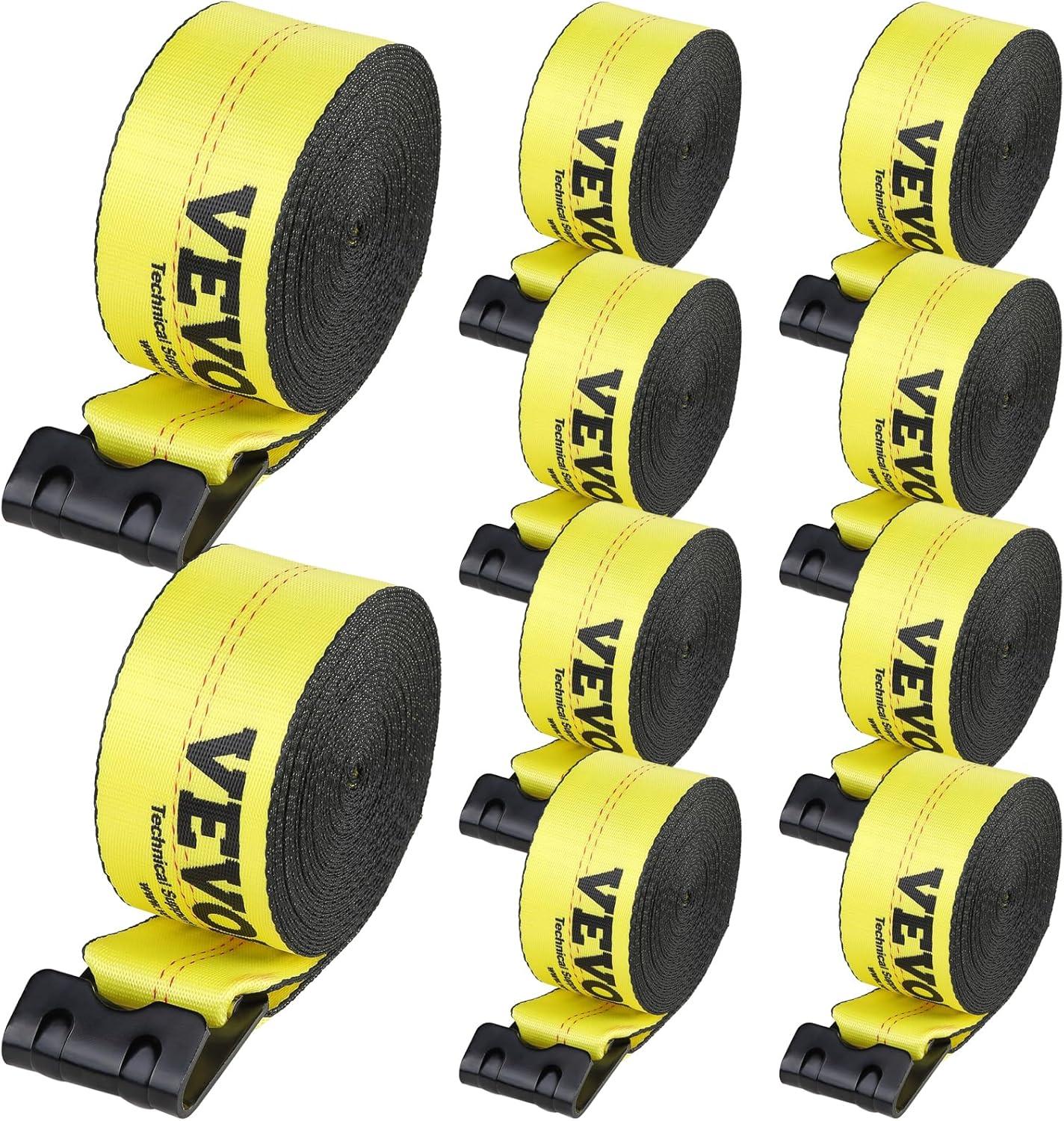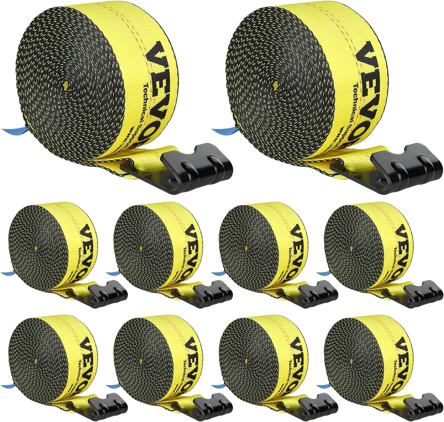 VEVOR Truck Straps, 4" x30' Heavy Duty Tie Down w/Flat Hooks 18,000lbs Break Strength, WLL# 6000lbs, Cargo Straps tie Down for Flatbeds, Trucks, Trailers, Farms, Rescues, Tree Saver, Yellow(10 Pack)(Yellow)