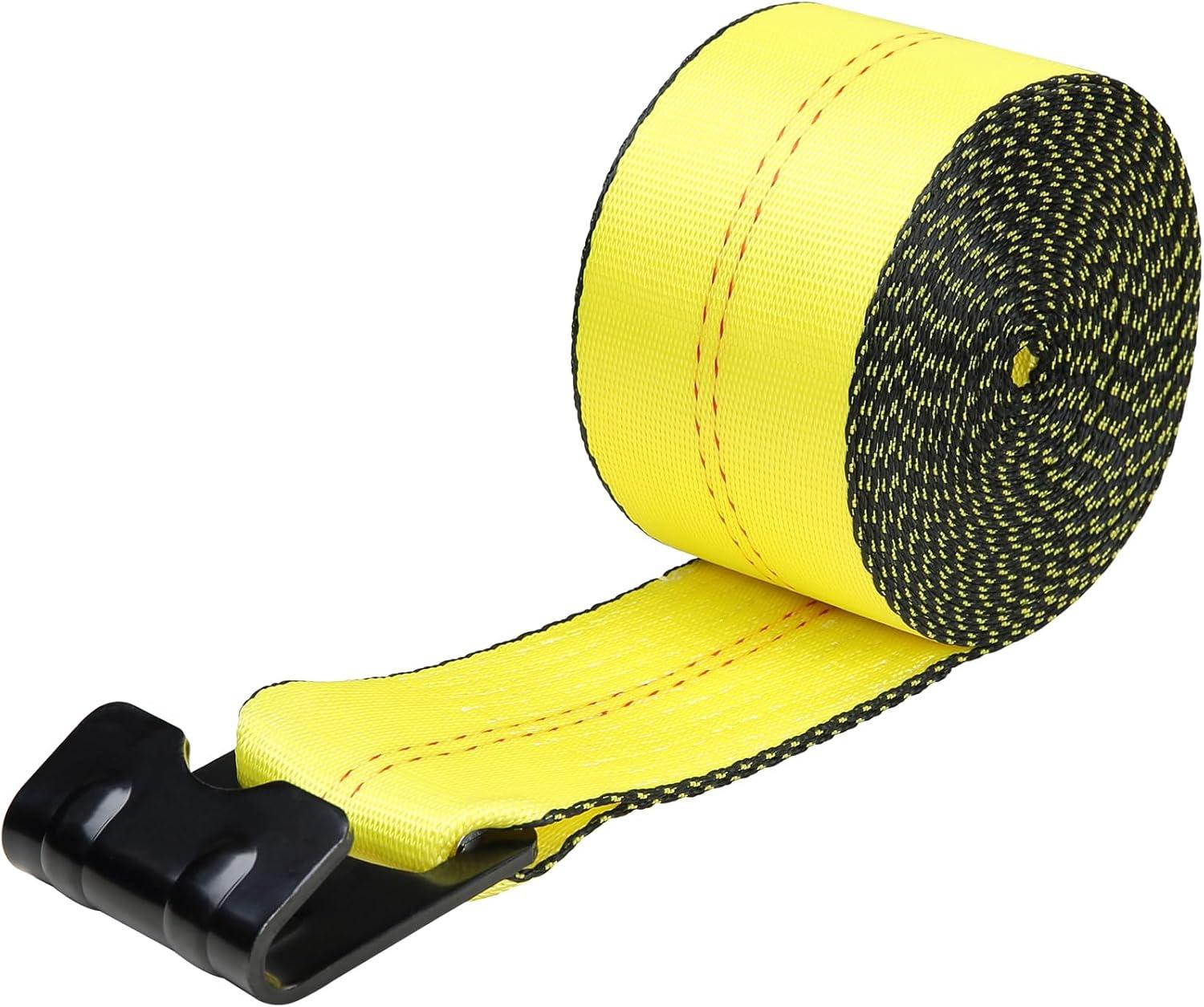 Premium Polyester: These truck straps are made out of durable yellow polyester that doesn't absorb water, shrink or stretch, withstanding changes from the external environment. With added coating on the webbing, they are more stable and reliable than straps made of other materials. Our flatbed winch straps meet the required strength after the professional-grade heat treatment process, thus increasing their lifespans.