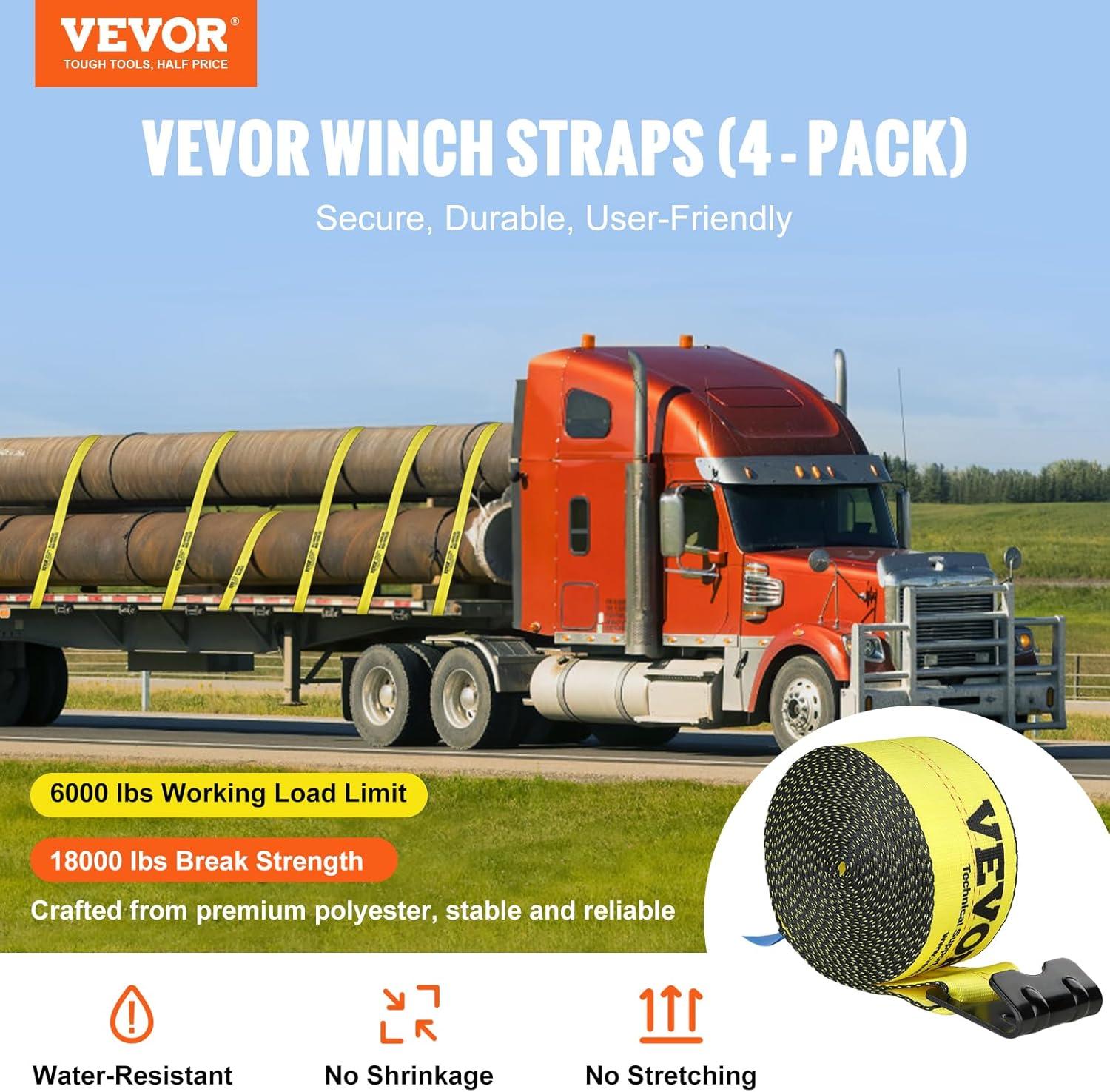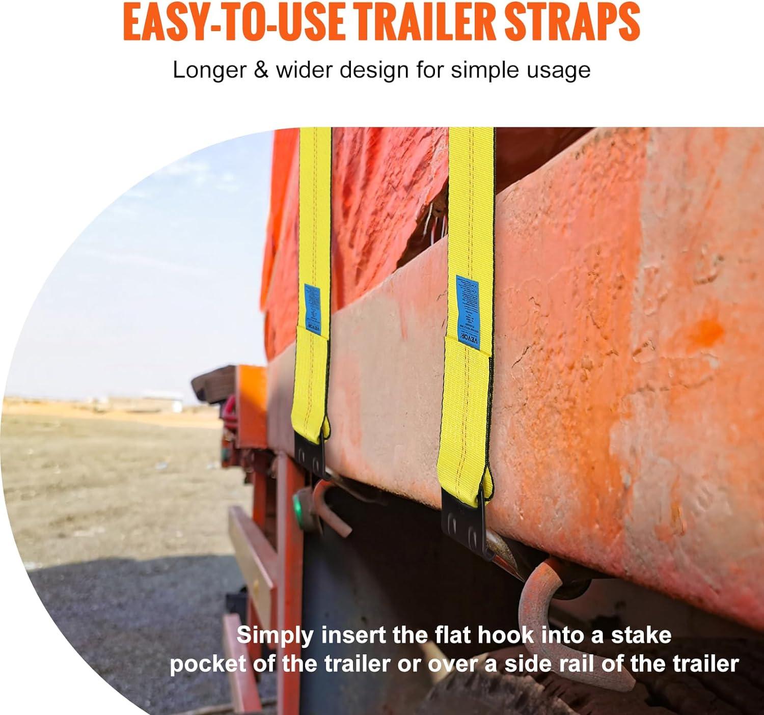 VEVOR Truck Straps, 4″ x30′ Heavy Duty Tie Down w/Flat Hooks 18,000lbs Break Strength, WLL# 6000lbs, Cargo Straps tie Down for Flatbeds, Trucks, Trailers, Farms, Rescues, Tree Saver, Yellow(10 Pack)(Orange)
