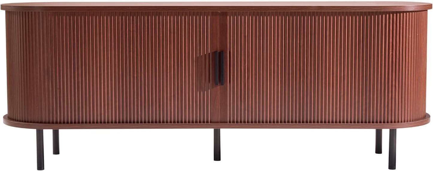 VEVOR TV Stand for TVs up to 65 inch, Mid-Century Modern Entertainment Center, Media Console Table with Storage Cabinet and Sliding Tambour Door, Boho Television Stand for Living Room, Bedroom, Oak(Brown)