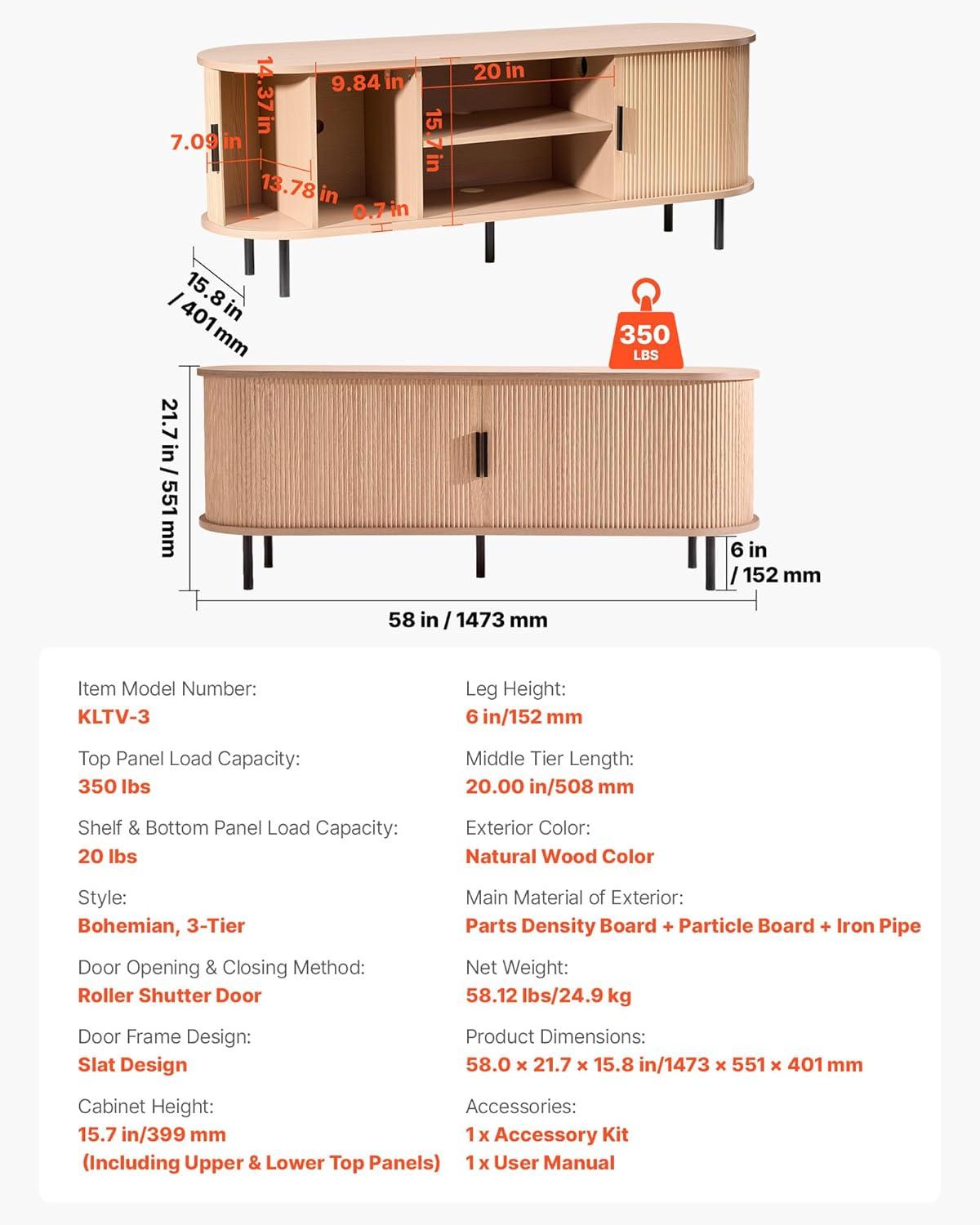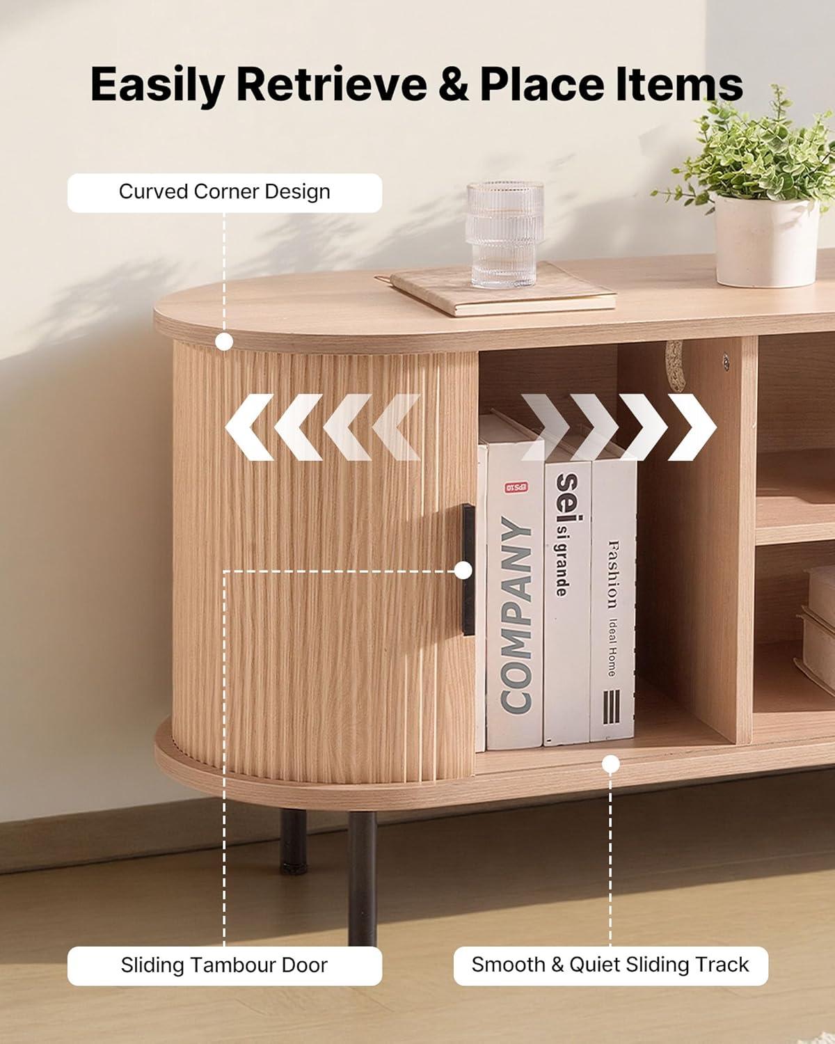 Thoughtful Details: This boho entertainment center is reliable to use. The rounded corners reduce the risk of bumps, and the 5.98 in high legs make cleaning easier. Its rolling door makes access easy, while an anti-tip device avoids accidental tipping
