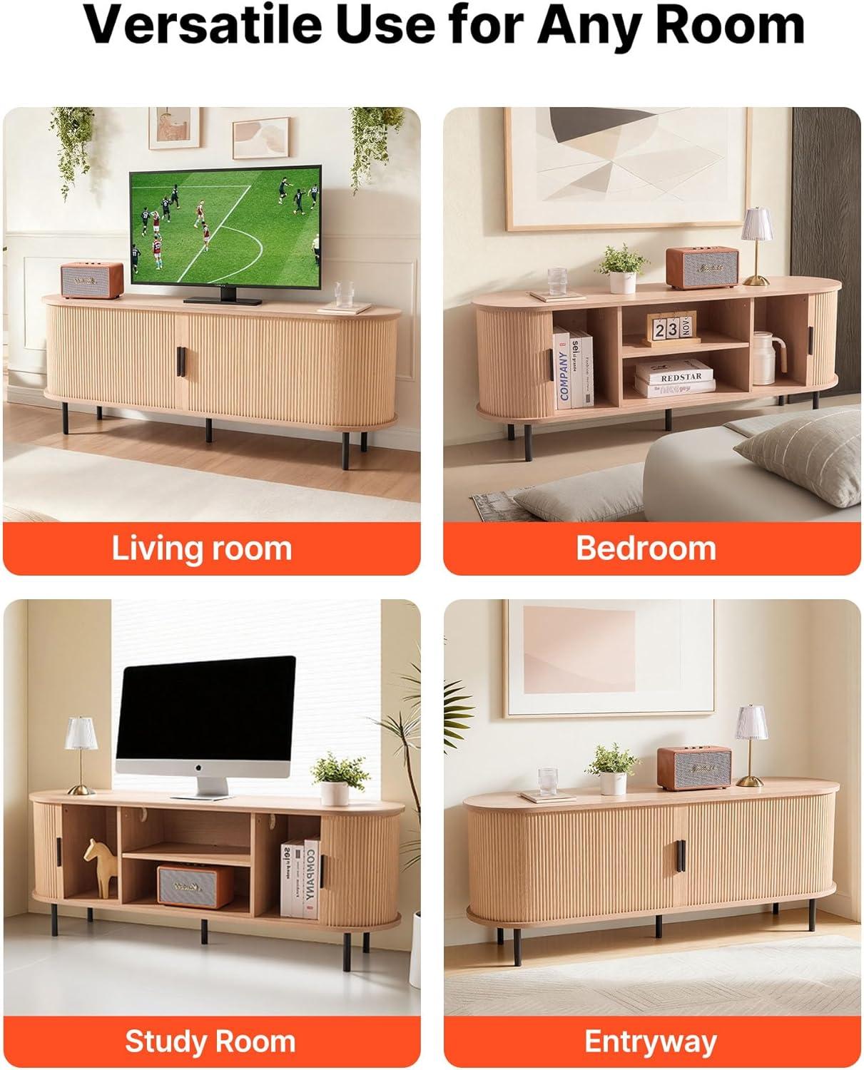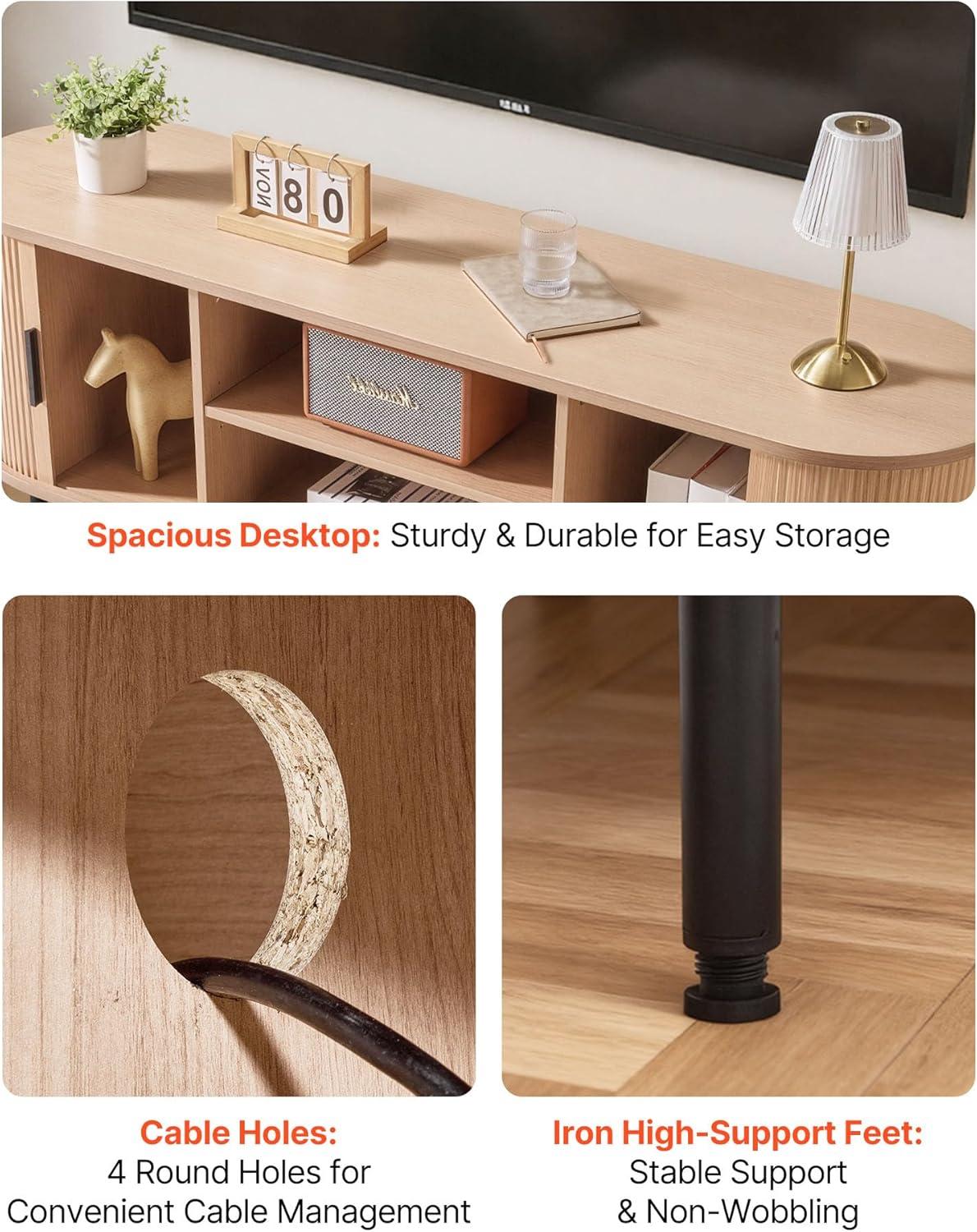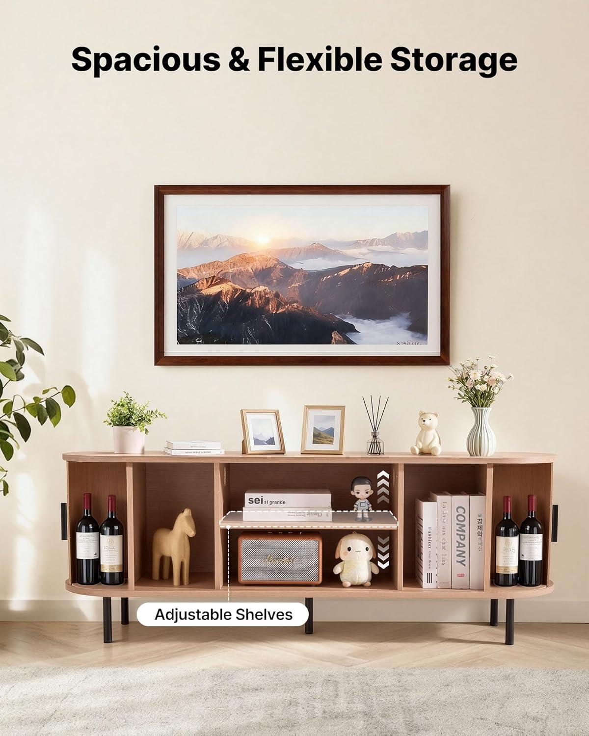 Large Storage Capacity: The fully enclosed TV media console table features adjustable shelves and 6 compartments, accommodating game consoles, DVDs, and set-top boxes, and daily items, while keeping them from dust. It has 4 cable holes to avoid clutter