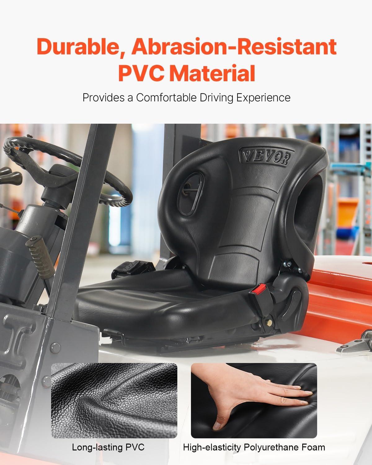 Durable PVC: Crafted from PVC leather and high-resilience polyurethane foam, this universal forklift seat is both durable and easy to maintain. This combination not only extends the seat's lifespan but also ensures superior comfort for the driver.
