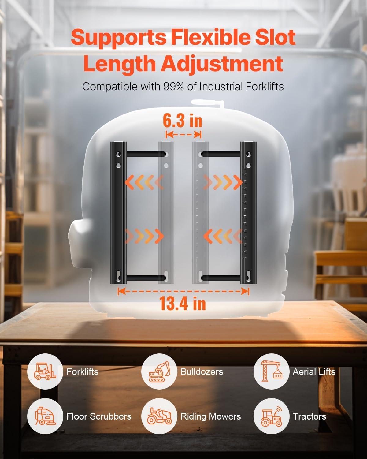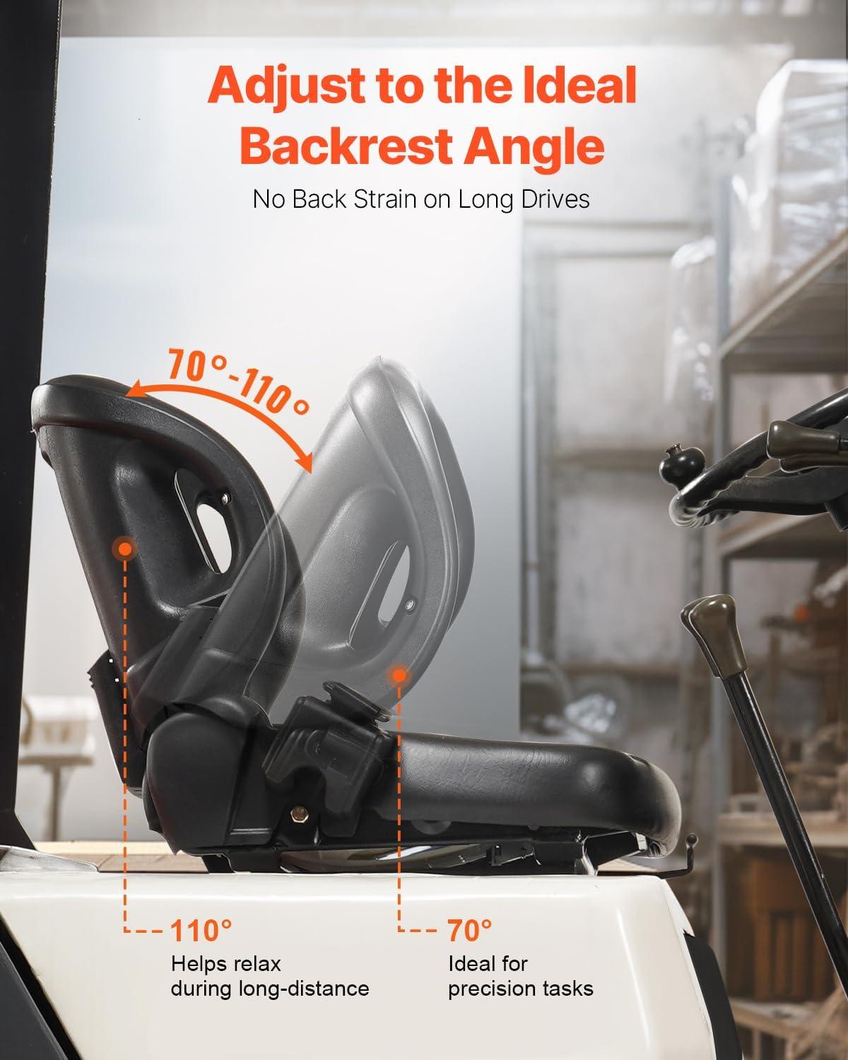 Flexible Slot Adjustment: The forklift seat features adjustable mounting holes, ranging from 6.3 to 13.4 inches, making it compatible with various forklift models, including small electric and large fuel-powered units. For operators who frequently switch forklifts, this tractor seat offers quick adaptability, boosting work efficiency.