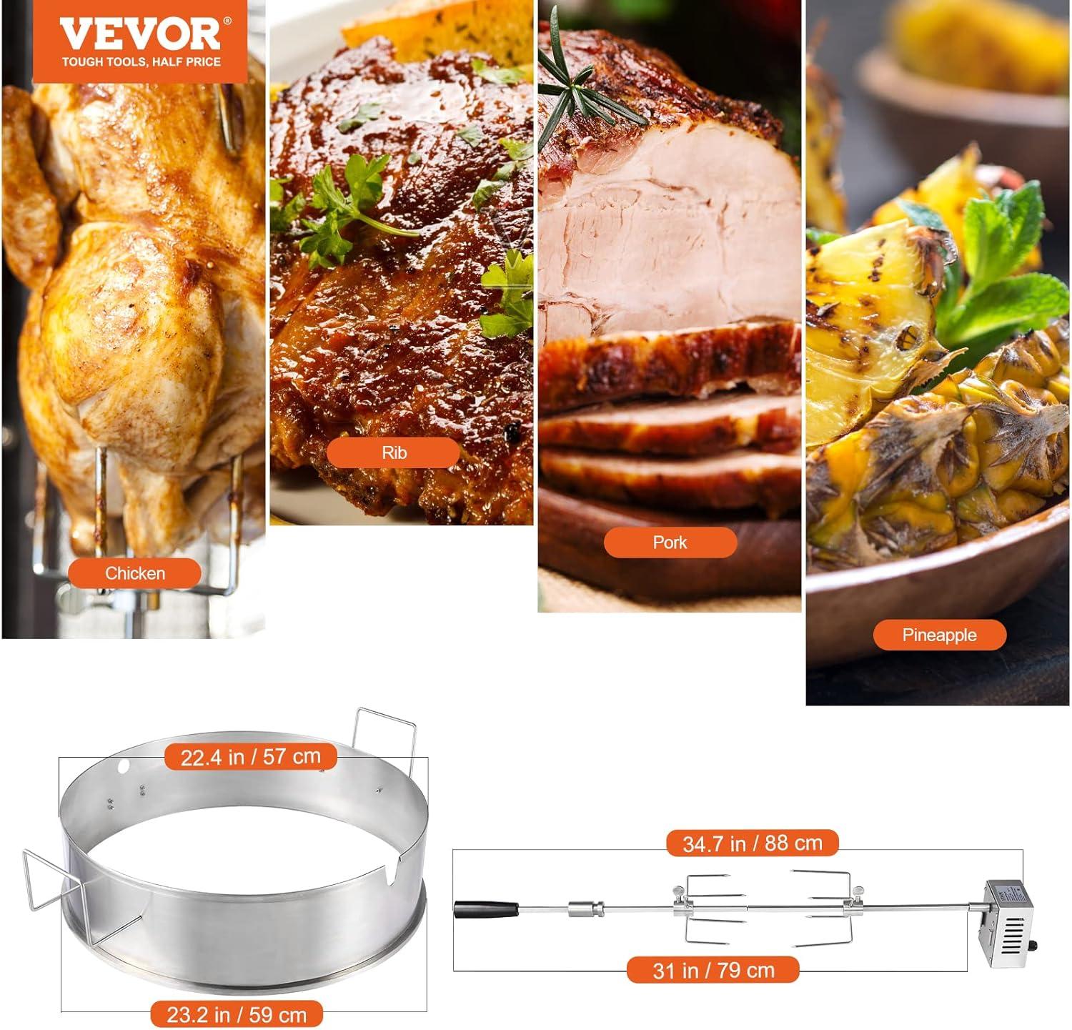 imageVEVOR Universal Grill Rotisserie Kit for Grills Electric BBQ Grill with 110V 9W Motor Stainless Steel Automatic Grilling Kit Heavy Duty 32quot39quot Hexagon Spit Rod 26 lbs Capacity Grill AttachmentRound