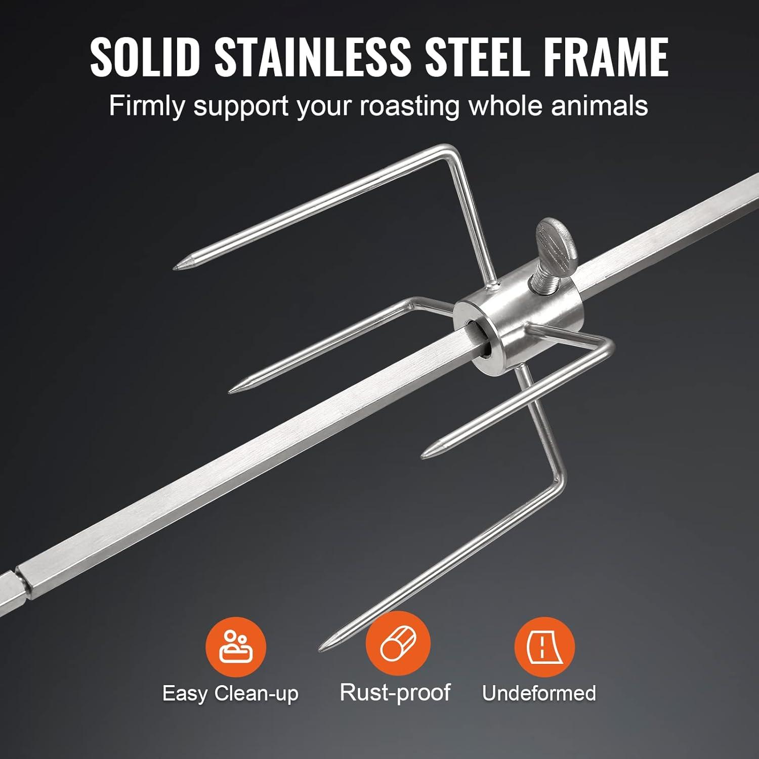 Quality Materials for Great Taste: Our universal rotisserie kit is made from solid stainless steel and shows superior craftsmanship. It can withstand high temperatures and is easy to maintain and clean.