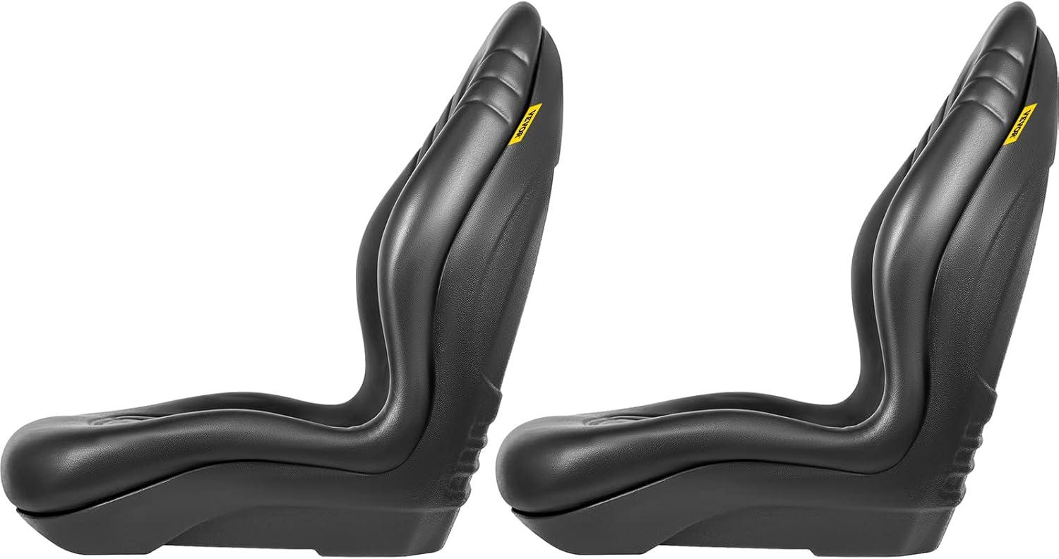 VEVOR Universal Lawn Tractor Seat Replacement, Compact High Back Mower Seat, Black Vinyl Forklift Seat, Central Drain Hole Skid Steer Seat with Mounting Bolt Patterns of 8″ x 11.5″ & 11.25″ x 11.5″(2Pcs Black)