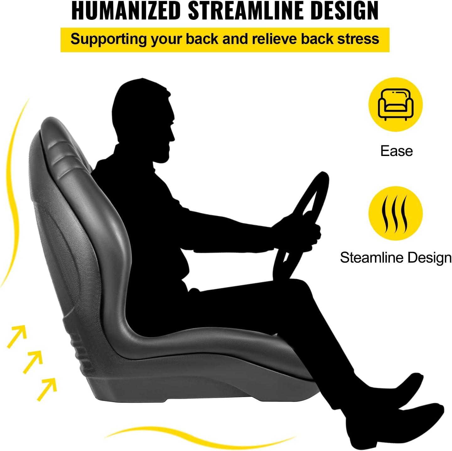 VEVOR Universal Lawn Tractor Seat Replacement, Compact High Back Mower Seat, Black Vinyl Forklift Seat, Central Drain Hole Skid Steer Seat with Mounting Bolt Patterns of 8″ x 11.5″ & 11.25″ x 11.5″(1Pc Black)