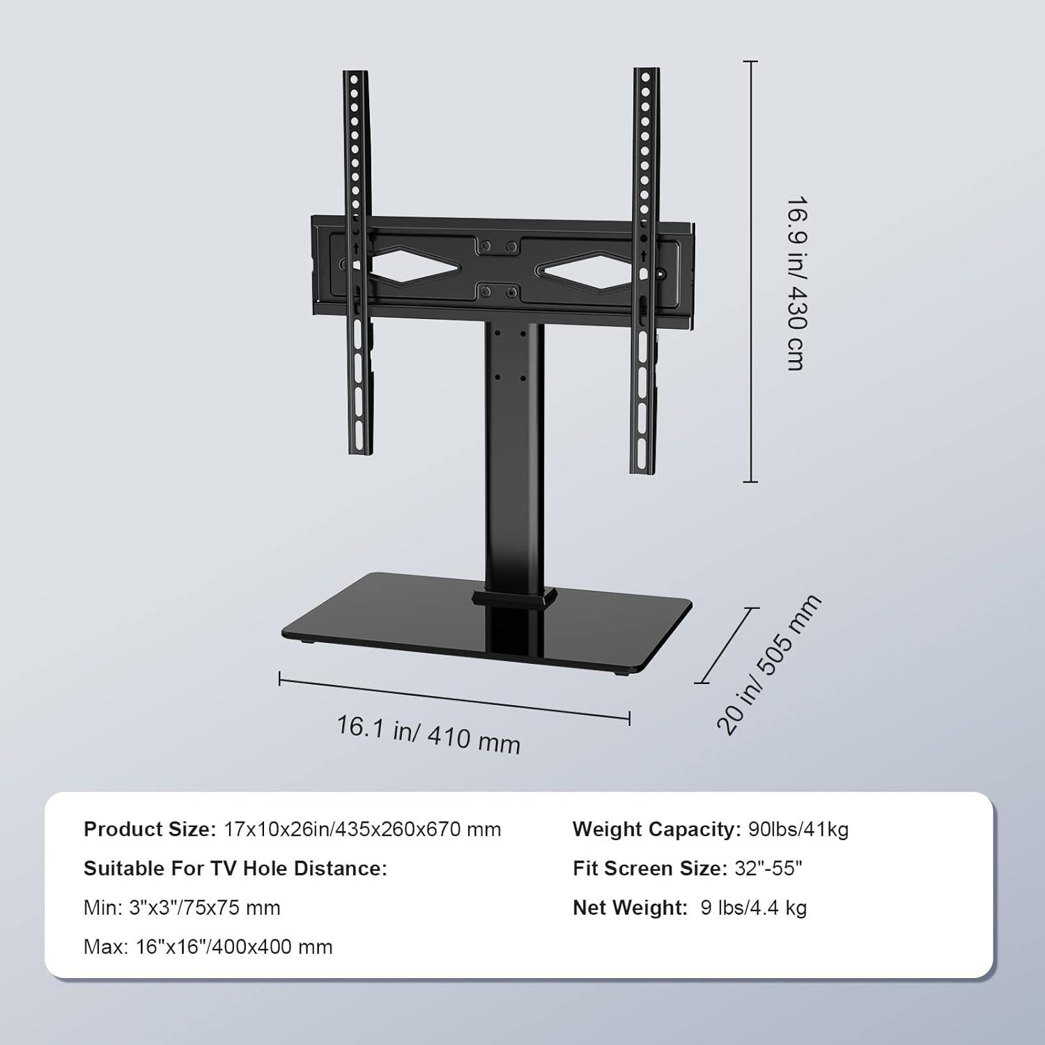 Universal Compatibility: Designed to accommodate your needs, our TV stand mount fits 32-55 inch TVs with a weight capacity of up to 90 lbs. The VESA ranges from 100mm x 100mm to 400mm x 400mm, making it compatible with most brands of TVs.