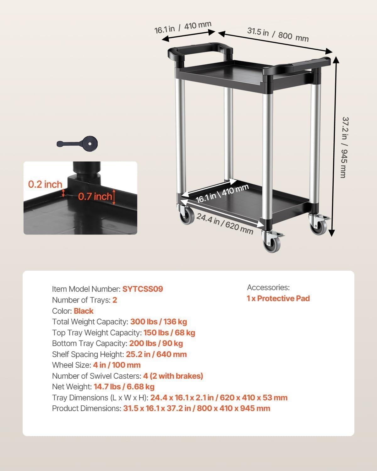 Ergonomic & Easy to Use: Lightweight at 18.9 lbs, this service cart is easy to maneuver with comfortable ergonomic handles. Rounded corners secure walls and furniture from damage.