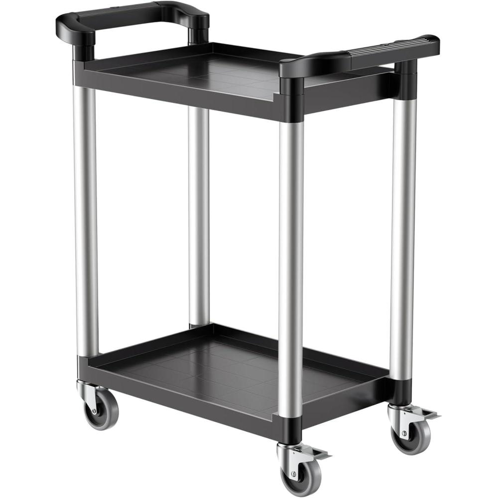 VEVOR Utility Cart, 300 lbs Load Capacity, 3-Tier Utility Plastic Cart with 360° Swivel Wheels (2 with Brakes), 24.4 x 16.1-inch Food Service Cart for Warehouse, Office, Home, Restaurant, Kitchen(2 Tier-300LBS)